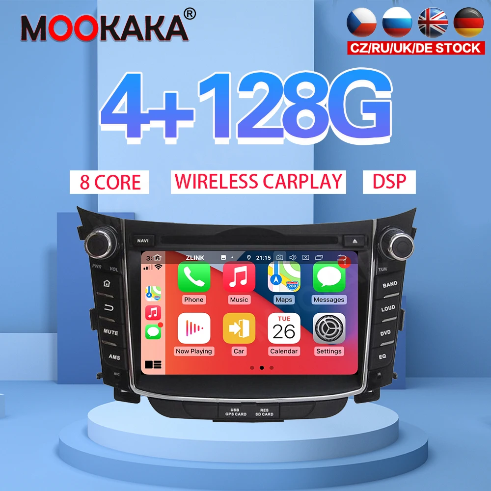 Автомобильный плеер 7 дюймов, Android 10, PX6, 4G, 128 ГБ, для Hyundai I30 2011-2014, автомобильный GPS-навигатор CarPlay, головное устройство DSP, стерео