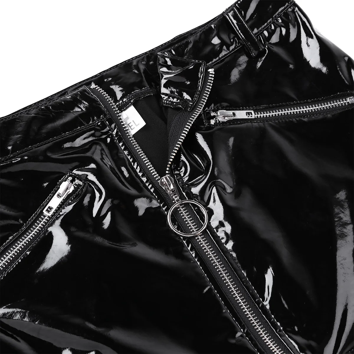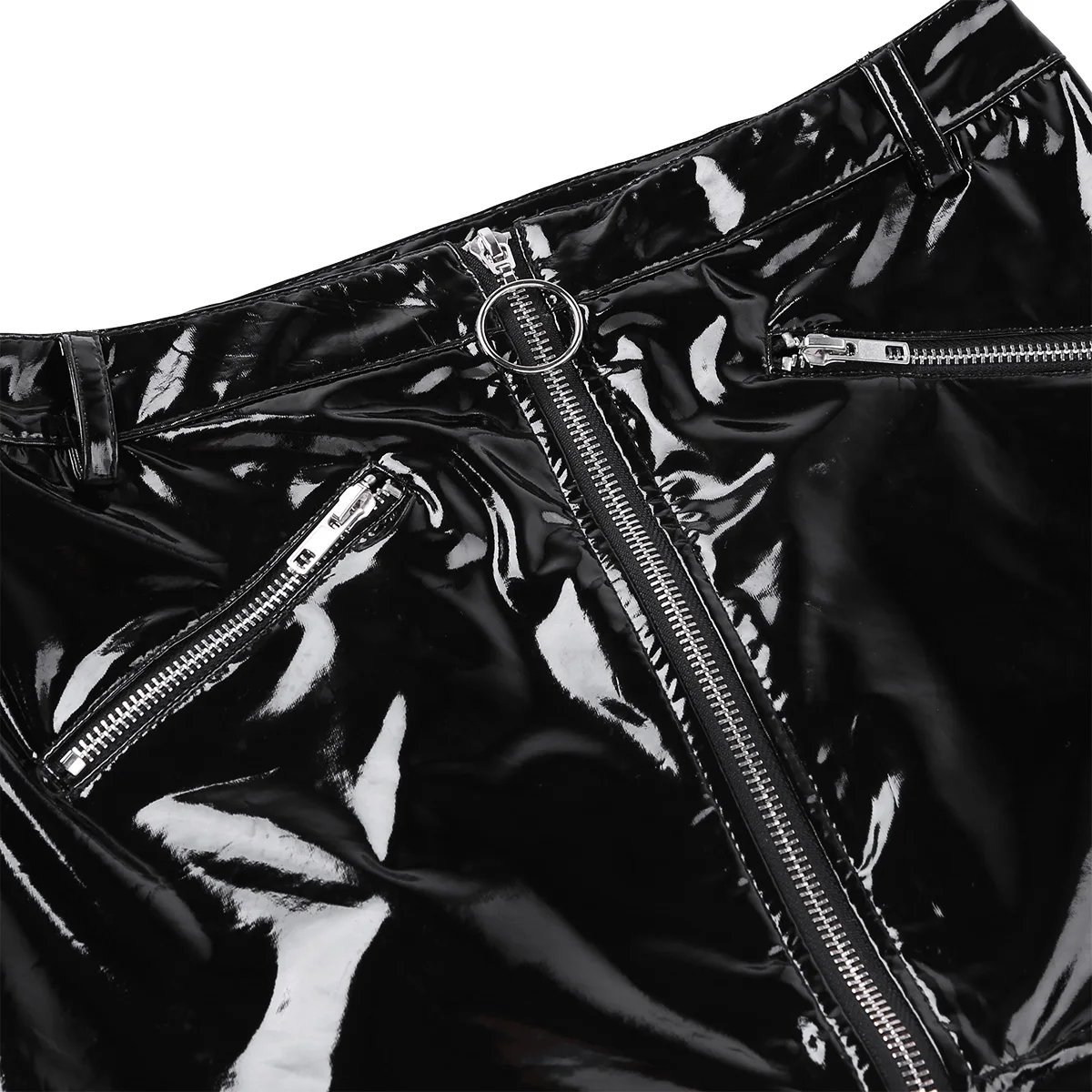 Особенности:Женская облегающая мини-юбка из искусственной кожи, блестящая и однотонная.Эластичная Удобная линия талии, с двумя фальшивыми карманами на молнии и застежкой-молнией спереди.Хорошая эластичная ткань, мягкая и с блеском, сделает вас более привлекательной.Идеально подходит для вечеринки, клуба, костюмов или повседневной носки.Пожалуйста, внимательно ознакомьтесь с таблицей размеров ниже, ручная стирка в холодной воде.