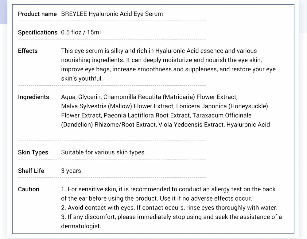 Название продукта: крем для лица с гиалуроновой кислотой BREYLEE