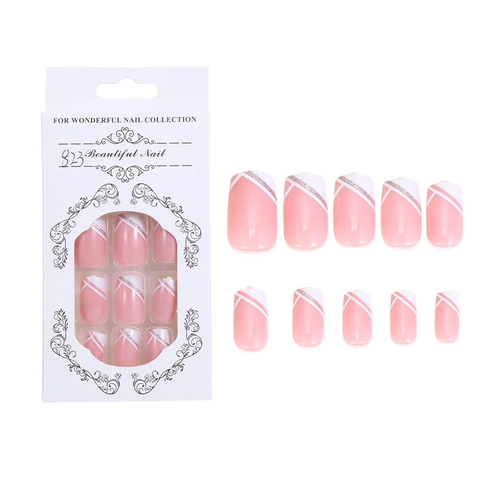 Скошенный Французский Простой дизайн ногтей готовый накладной лак для ногтей французская Съемная Накладка для ногтей