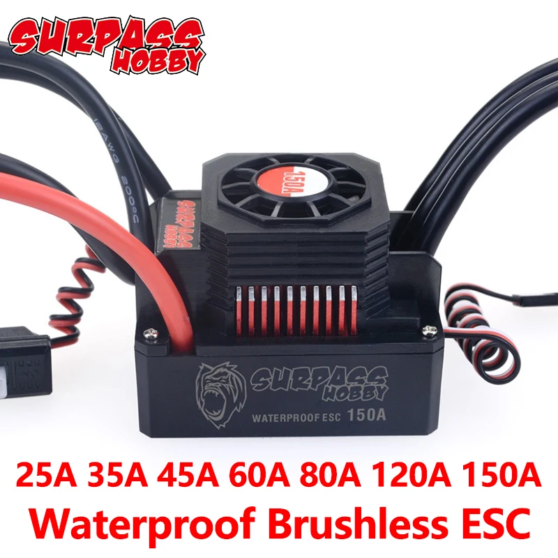 Контроллер скорости SURPASS HOBBY ESC, водонепроницаемый бесщеточный контроллер скорости, 25 А, 45 А, 60 А, 80 А, 120 А, 150 А, XT60 T, штекер для радиоуправляемой гоночной машины 18, 110, 112
