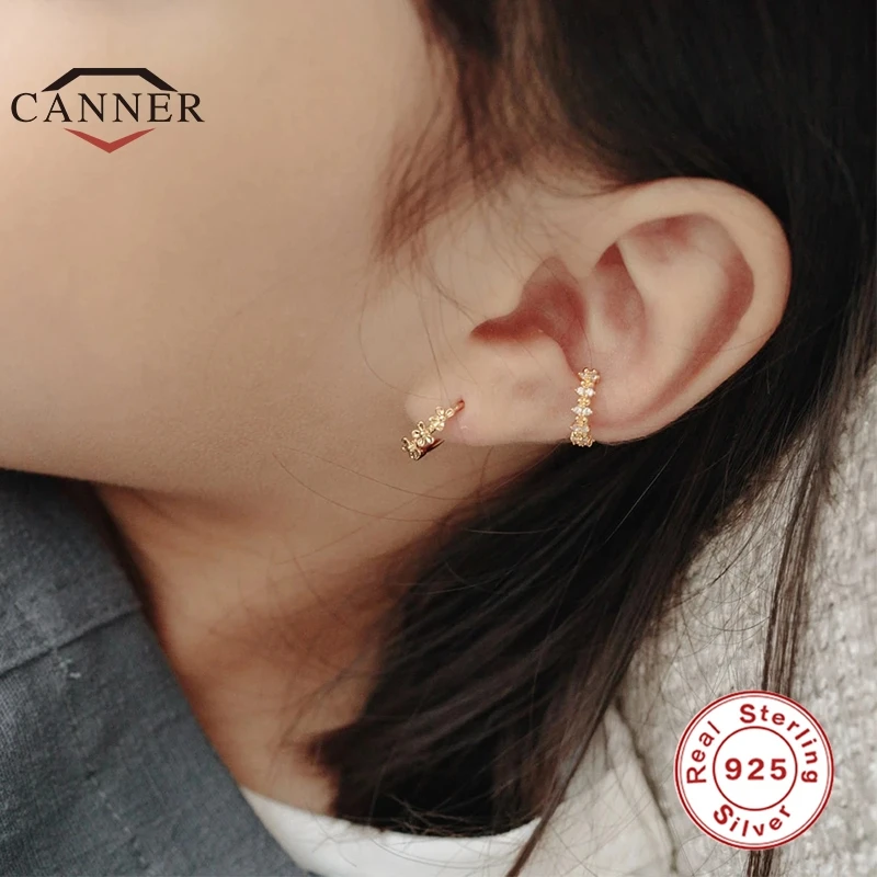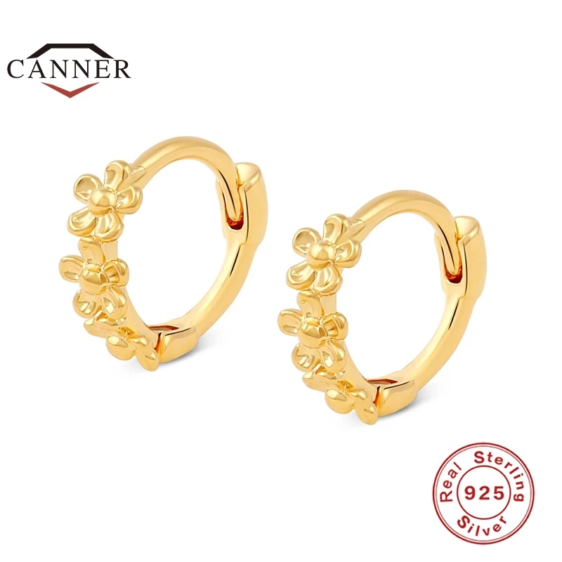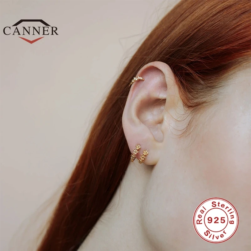 Женские серьги-кольца CANNER из стерлингового серебра 925 пробы с лепестками, серьги-кольца для пирсинга Huggie, ювелирные изделия, 925
