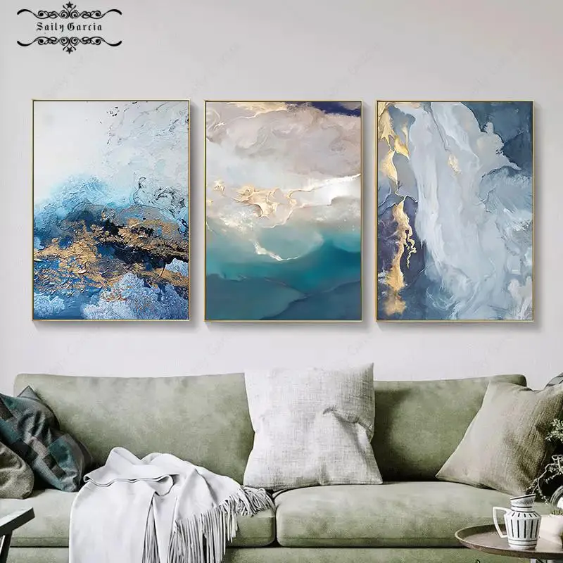Современная Картина на холсте Абстрактная синяя мраморная океанская волна плакаты и принты Скандинавская Настенная картина для украшения интерьера дома