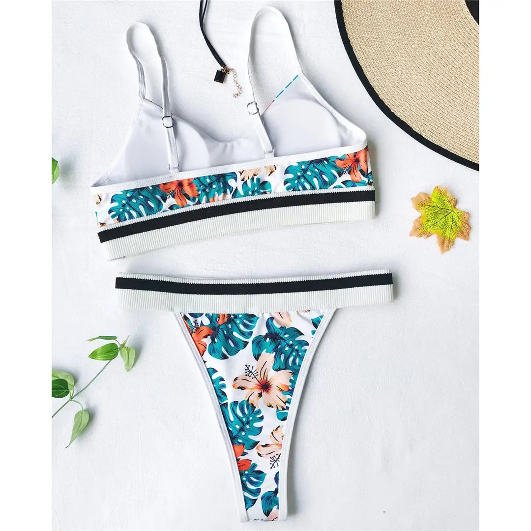 2021 цветочный бикини пуш-ап купальный костюм женский комплект из д...