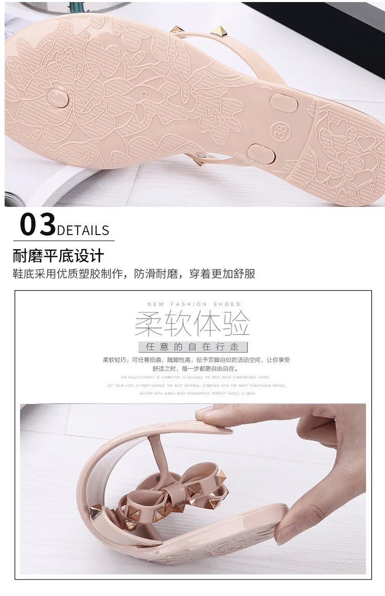 Женские сандалии-желе на плоской подошве, пляжные шлепанцы с бантом...
