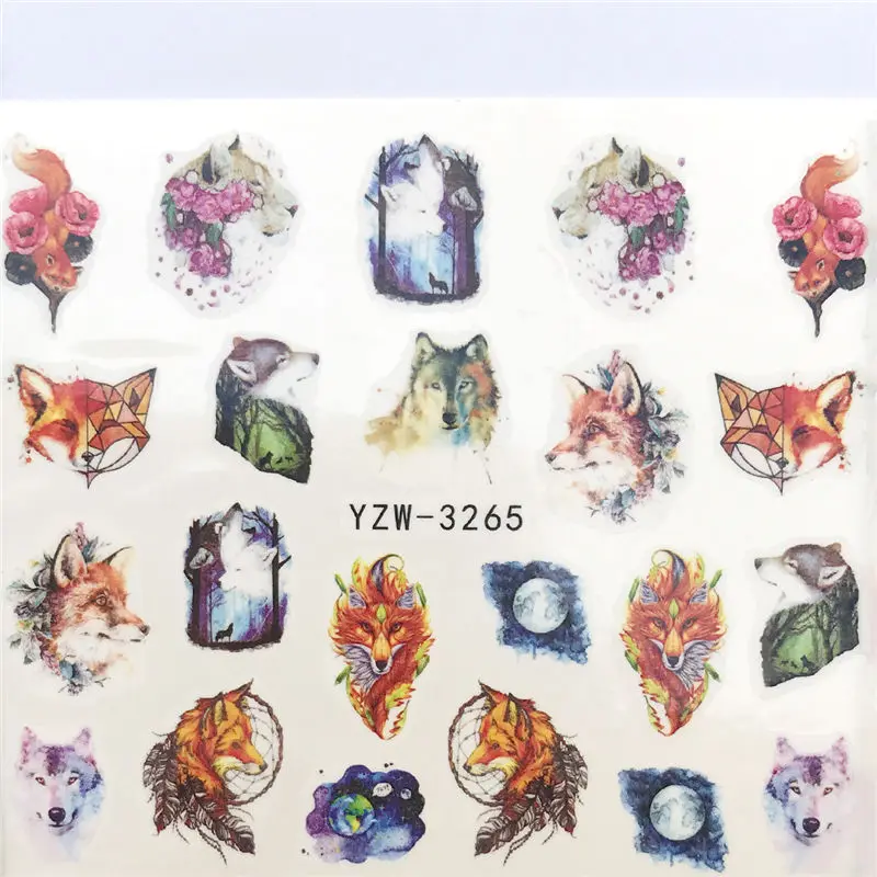 Наклейки для ногтей, волк, цветы, животные, сделай сам, водные слай...