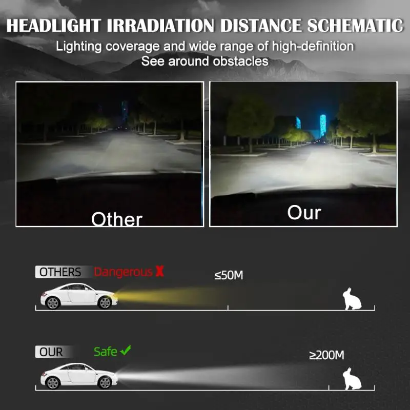 В светодиодный головной светильник лампы повышения супер-сфокусированного луча узор, который может достигнуть самого лучшего светильник форма и более четкой видимости, без темных пятен или не ограничивается помещениями, И не будет слепить или блики на встречных машин, избежав, таким образом, водителя рассеянный светильник проблему и отвлекающих для того, чтобы обеспечить безопасность вождения, Это лучший светодиодный светильник для замены оригинальной лампы.