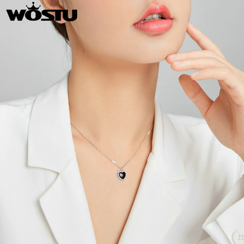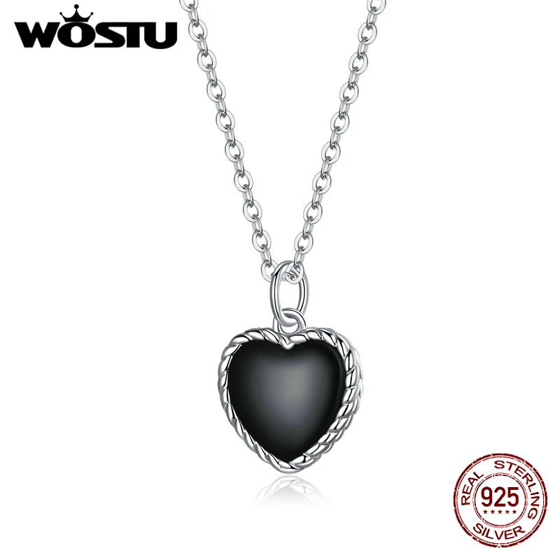 Женская цепочка с кулоном в виде черного сердца, из серебра 2021 пробы