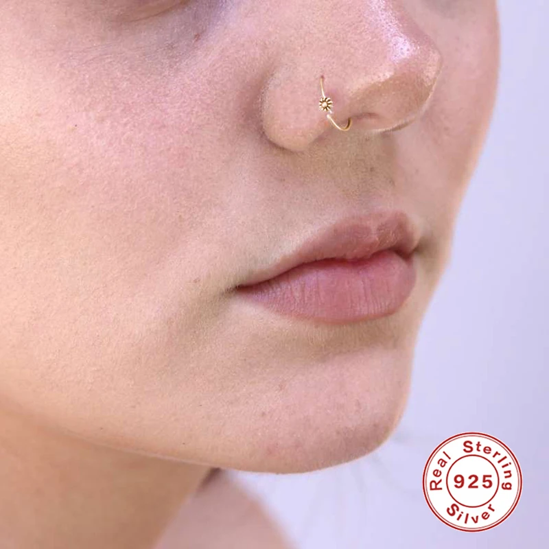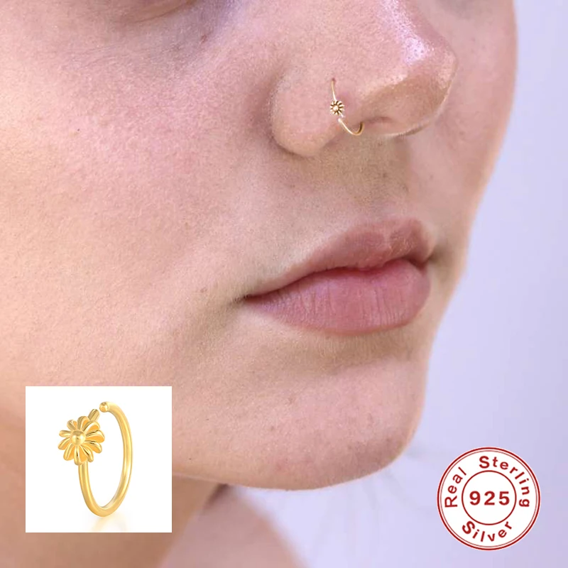 S925 серебро кольца носа в богемном стиле с цветочным узором 925 пробы плата пирсинга хрящей, ювелирное изделие для тела, милые, милые девчачьи Для женщин, хорошее ювелирное изделие