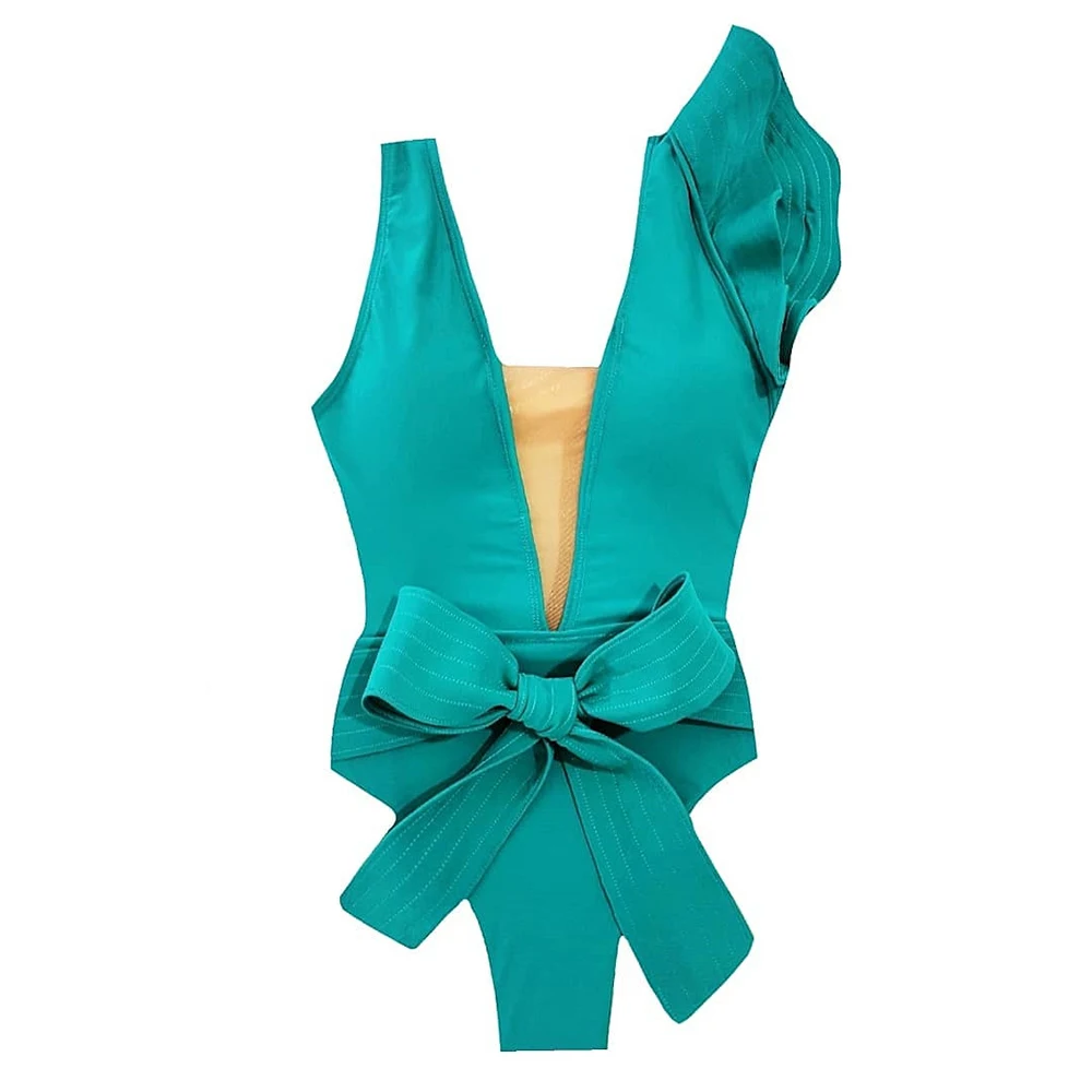 Цельный купальный костюм 2021, сексуальная купальная одежда с оборк...