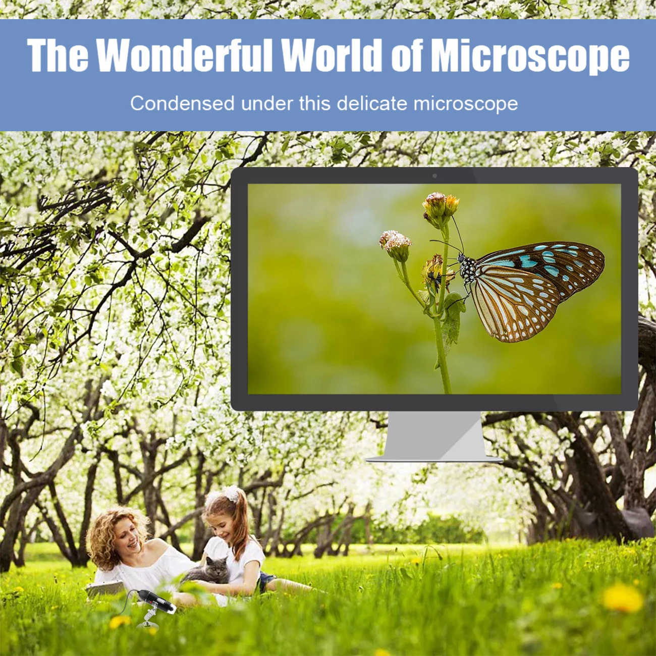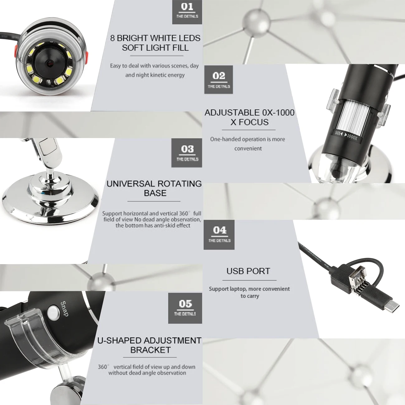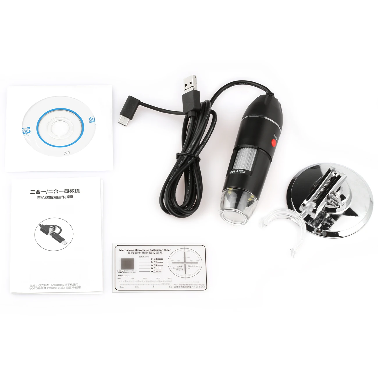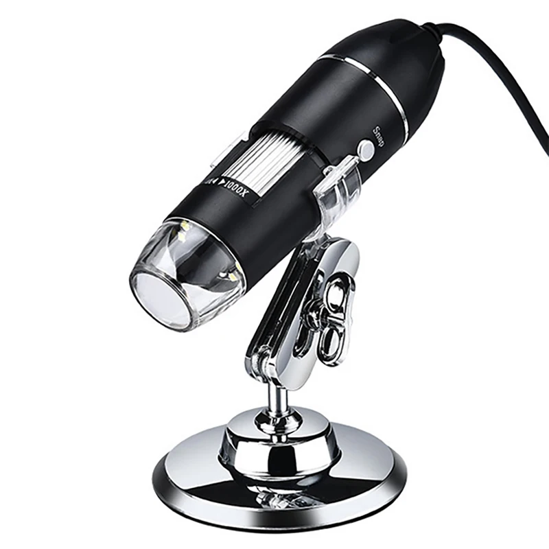 Цифровой микроскоп, цифровой эндоскоп с 8 светодиодами и кронштейном, увеличение 1600 крат, USB, 3 в 1