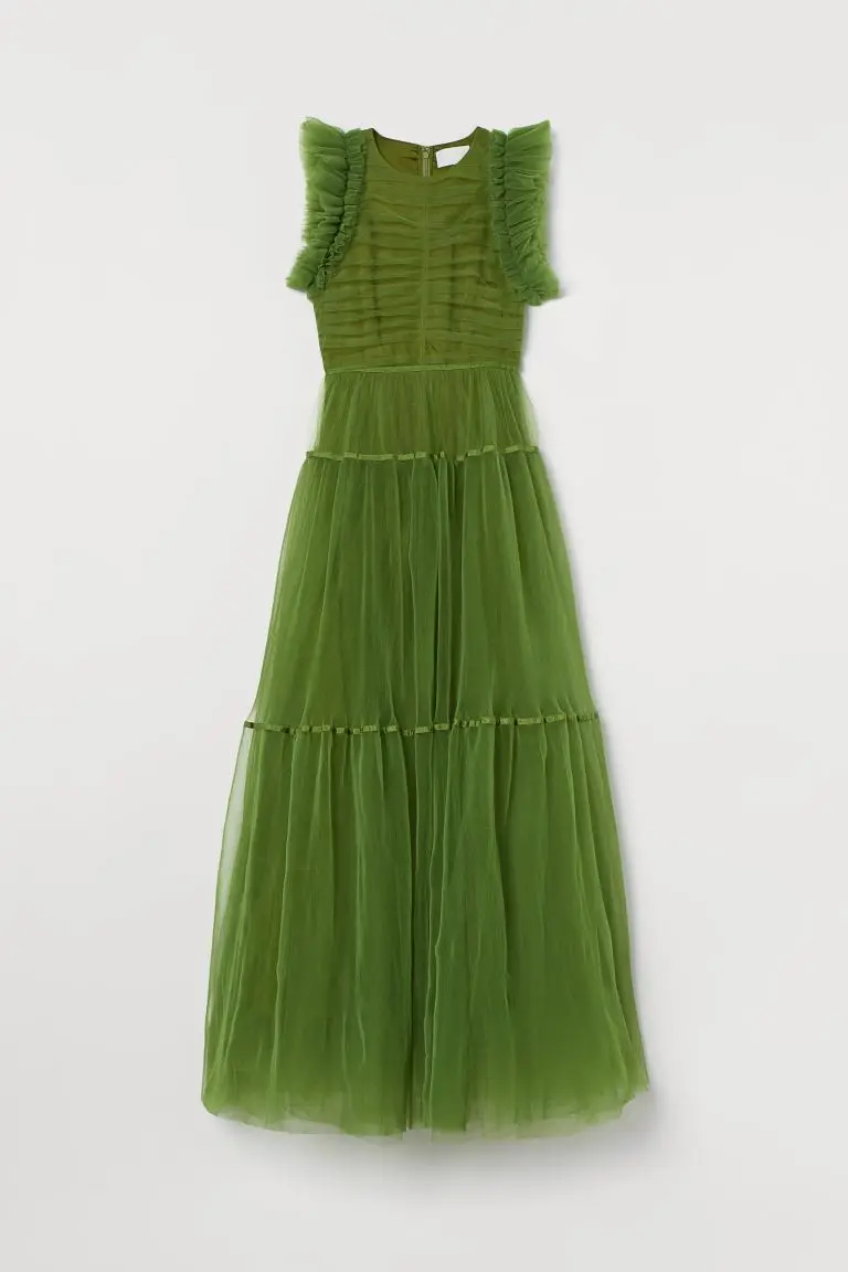 Пышные многоярусные тюлевые женские платья, охотничьи зеленые плать...
