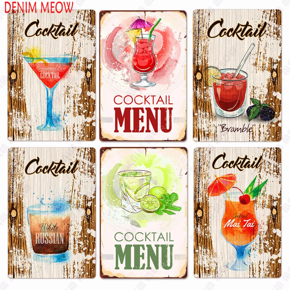 Винтажный кухонный Декор коктейльное меню металлическая жестяная вывеска Mojito Margarite Декор для комнаты настенная живопись тарелки бар клубный стикер WY148
