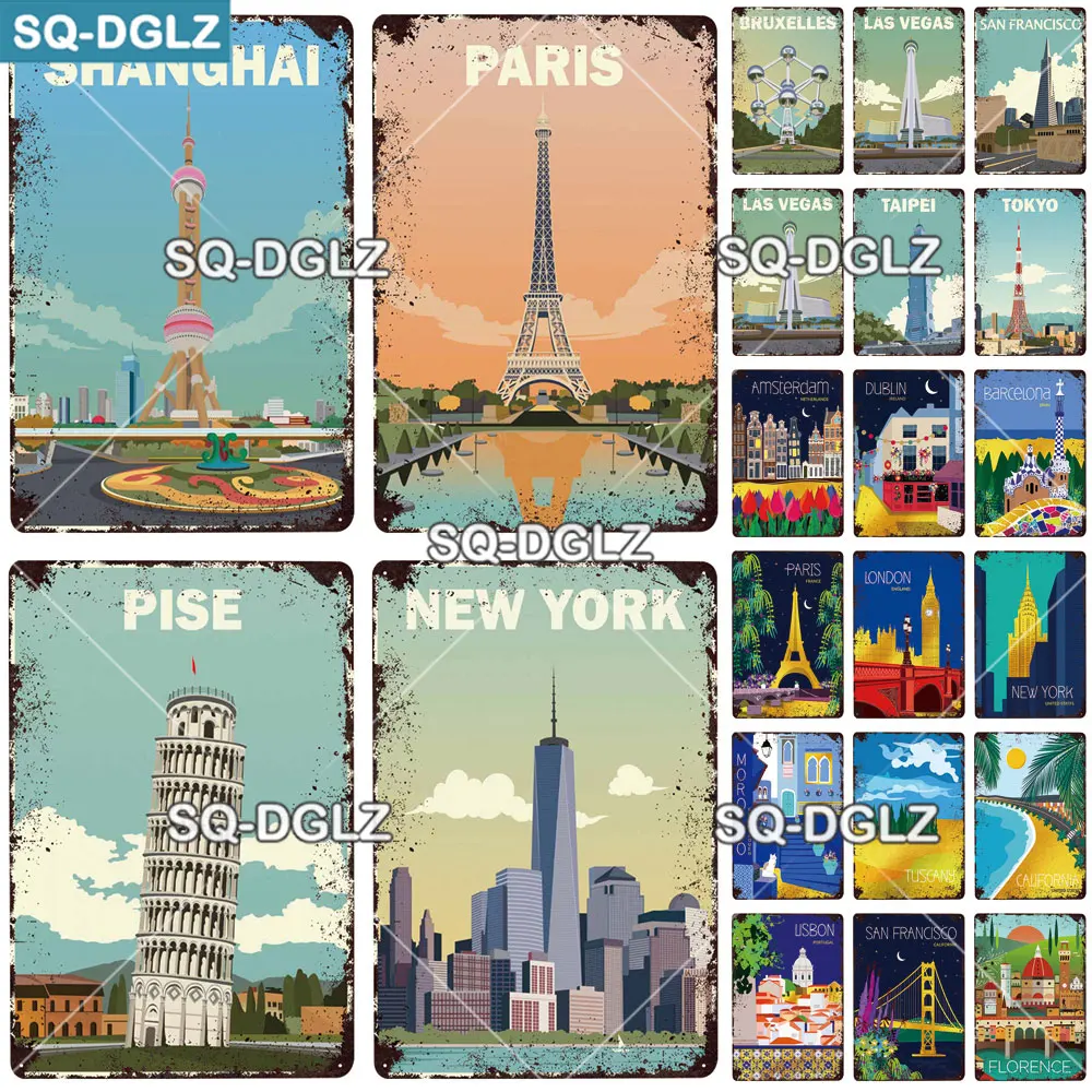 Парижа металлический знак Винтаж металлическая табличка декор для пивной бар Настенный декор жестяная вывеска Нью-ЙоркаспиоШанхай плакат подарок
