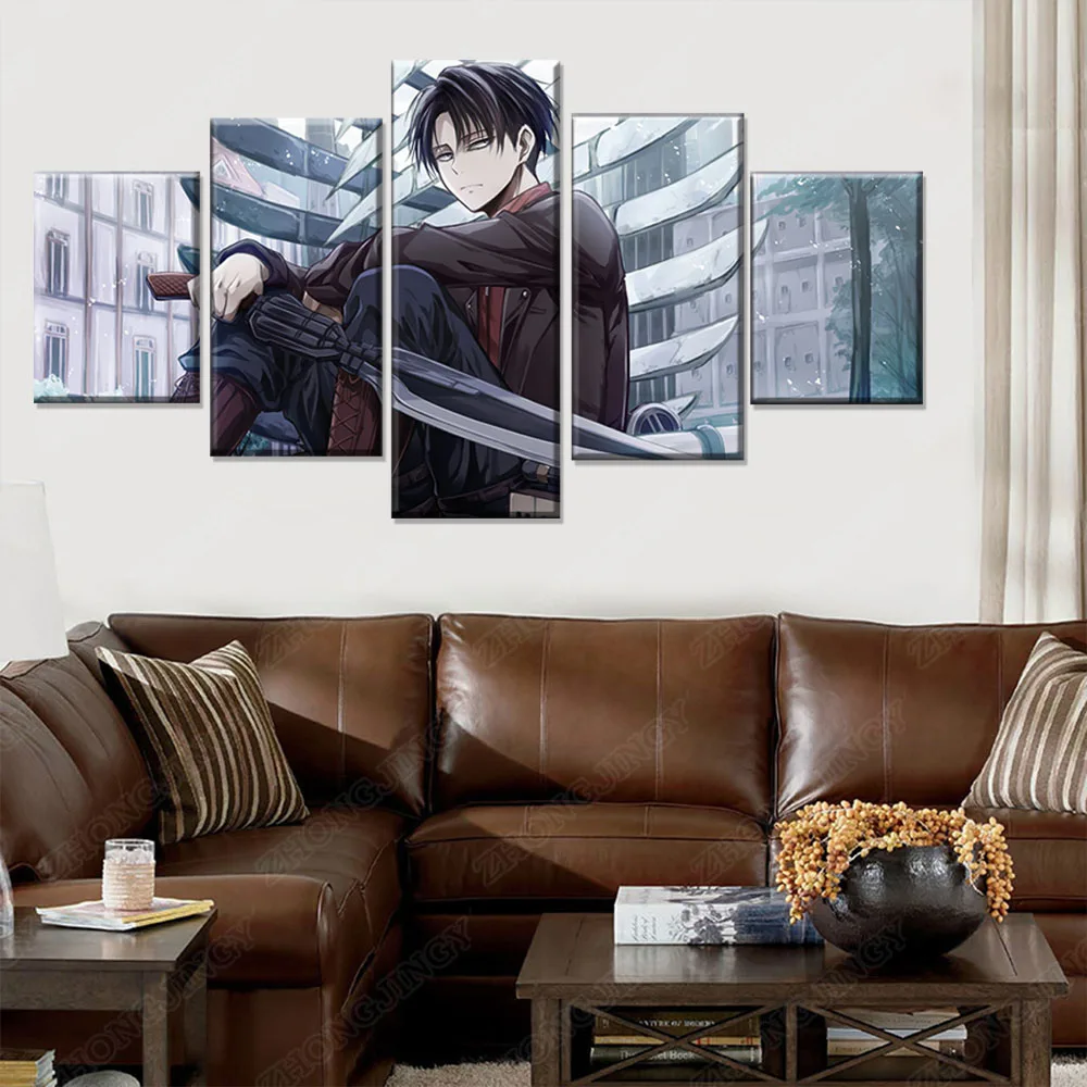 5 панелей Леви атака на постер Титан японская мультяшная ролевая живопись аниме Декор стена искусственная рамка