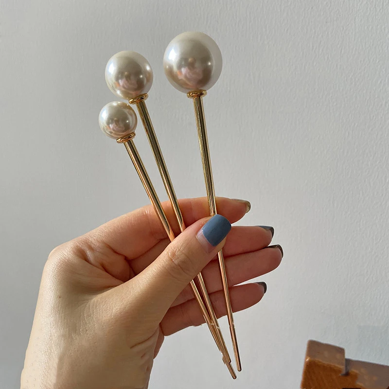 Заколки для волос женские, металлические, геометрические, с жемчужным шариком