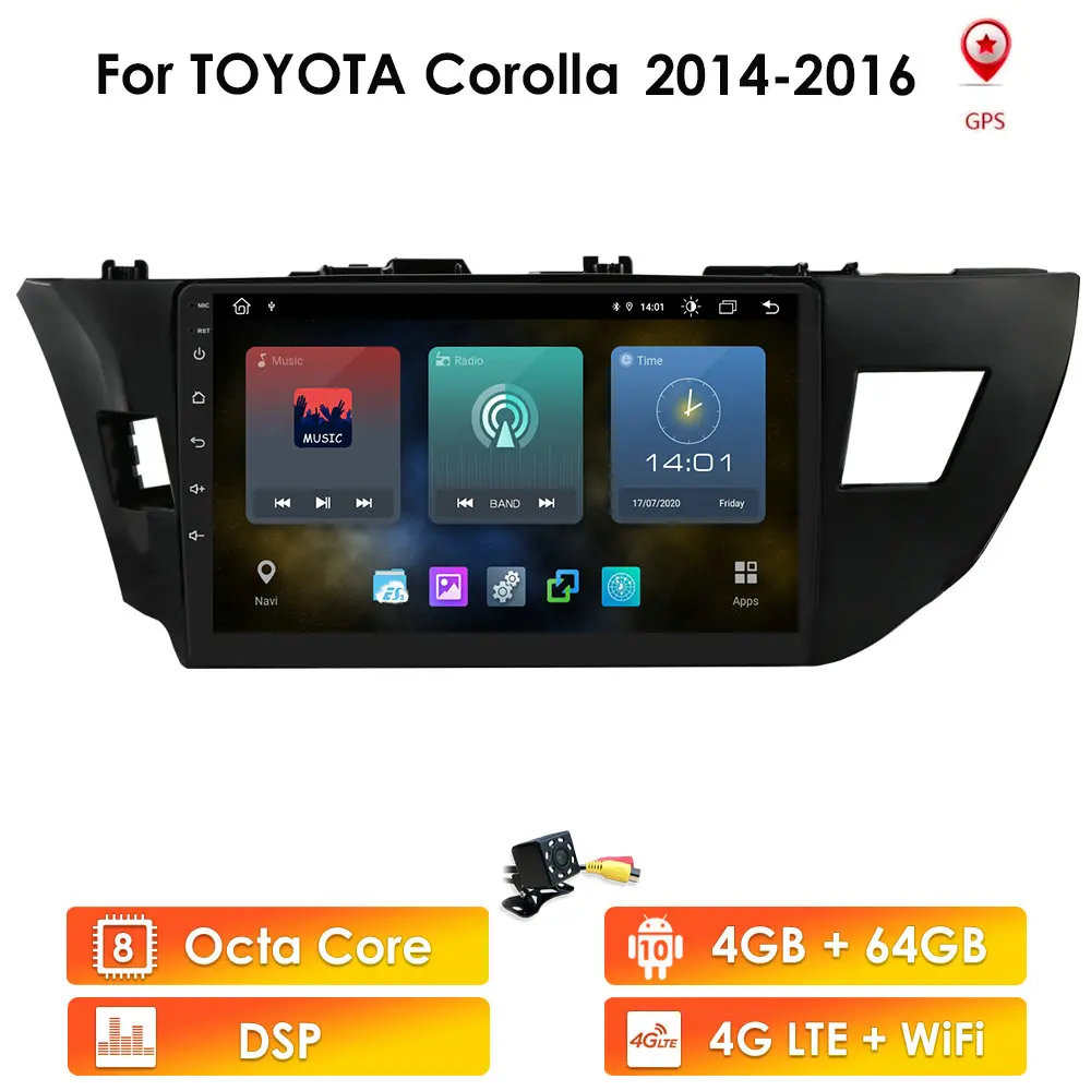 Четырехъядерный автомобильный радиоприемник, мультимедийный видеоплеер, навигация для Toyota Corolla 2014, 2015, 2016, GPS, стерео, Wi-Fi, BT, SWC, AM, FM, T3