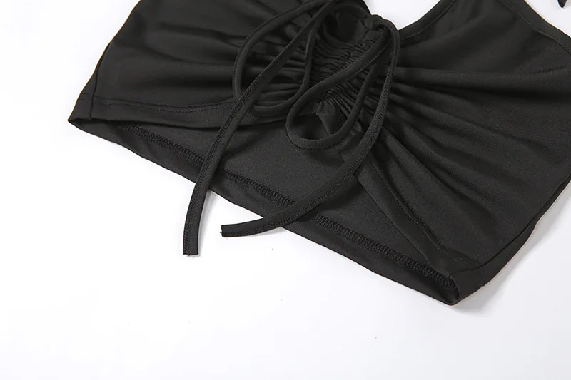 Шнурок с рюшами с резным узором с лямкой на шее футболка и шорты Комплект из двух предметов, комплект с сумкой в цвет, наборы для ухода за кожей повязки наряд завязки Топ Повседневное одноцветное