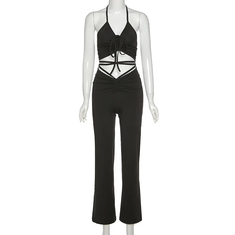 Сексуальный бандажный Топ, длинные штаны, наборы, женский топ с лям...