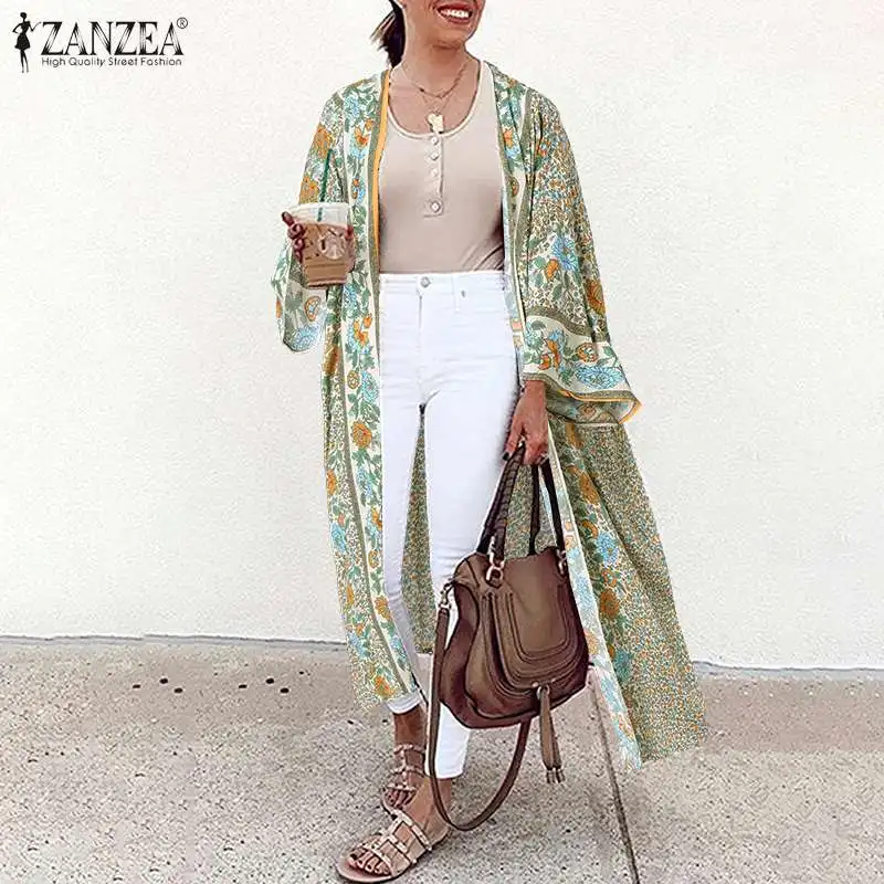 Кардиган-кимоно Женский, с цветочным принтом и длинным рукавом