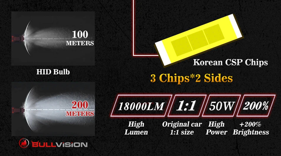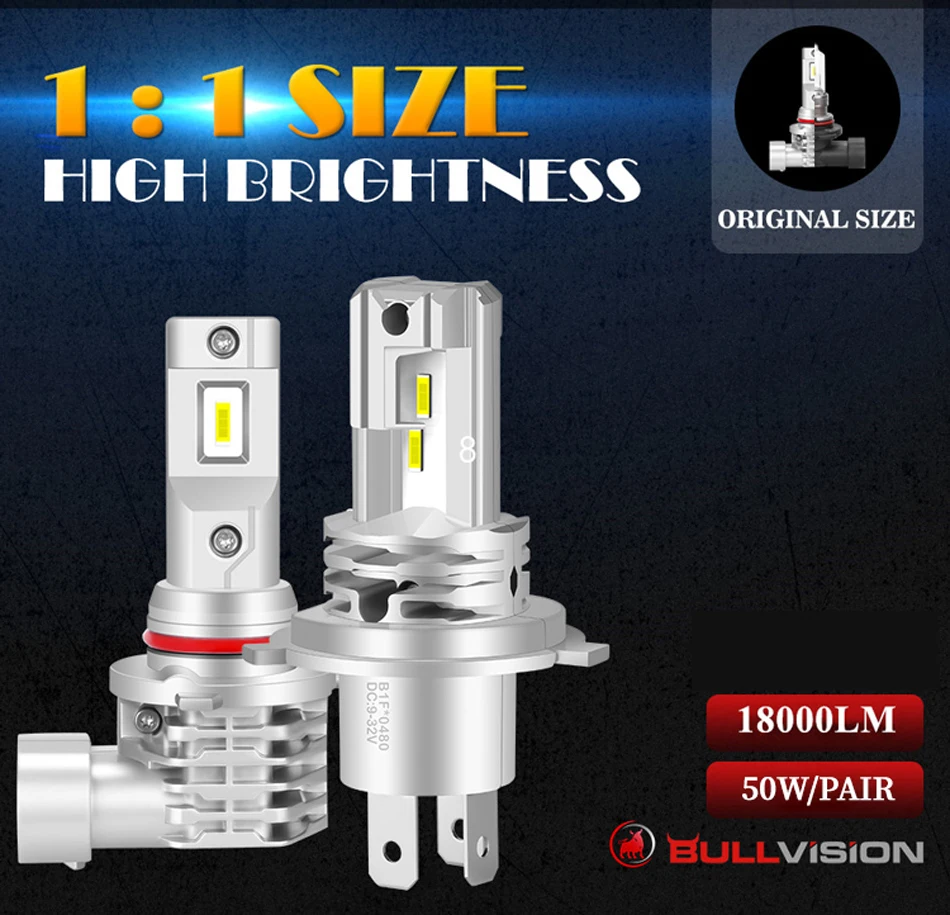 Светодиодная лампа Bullvision H7 H4 H11, 1:1 Размер, 4300K H8 H9 HB...
