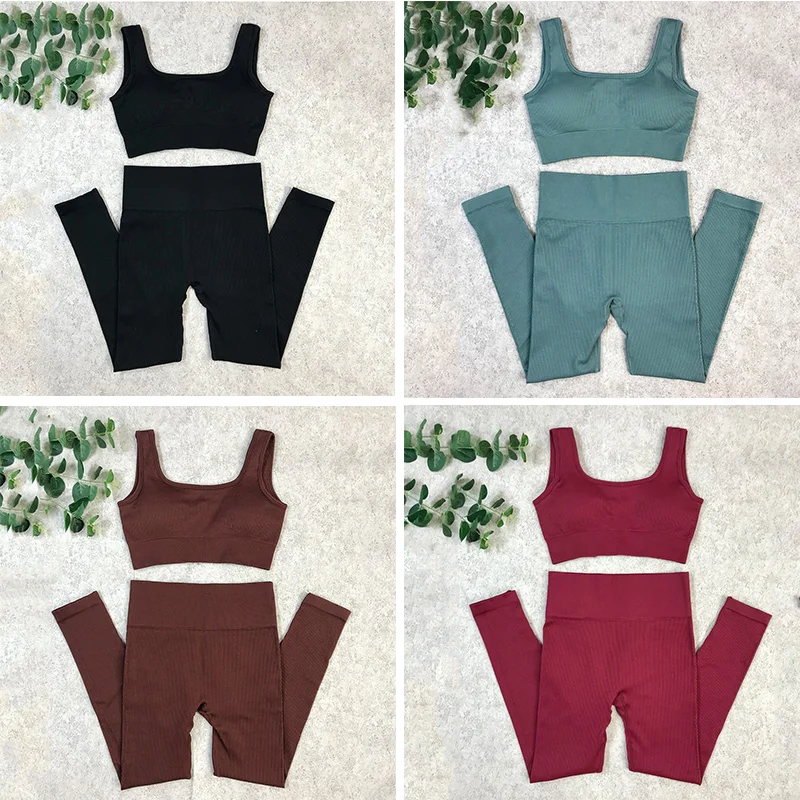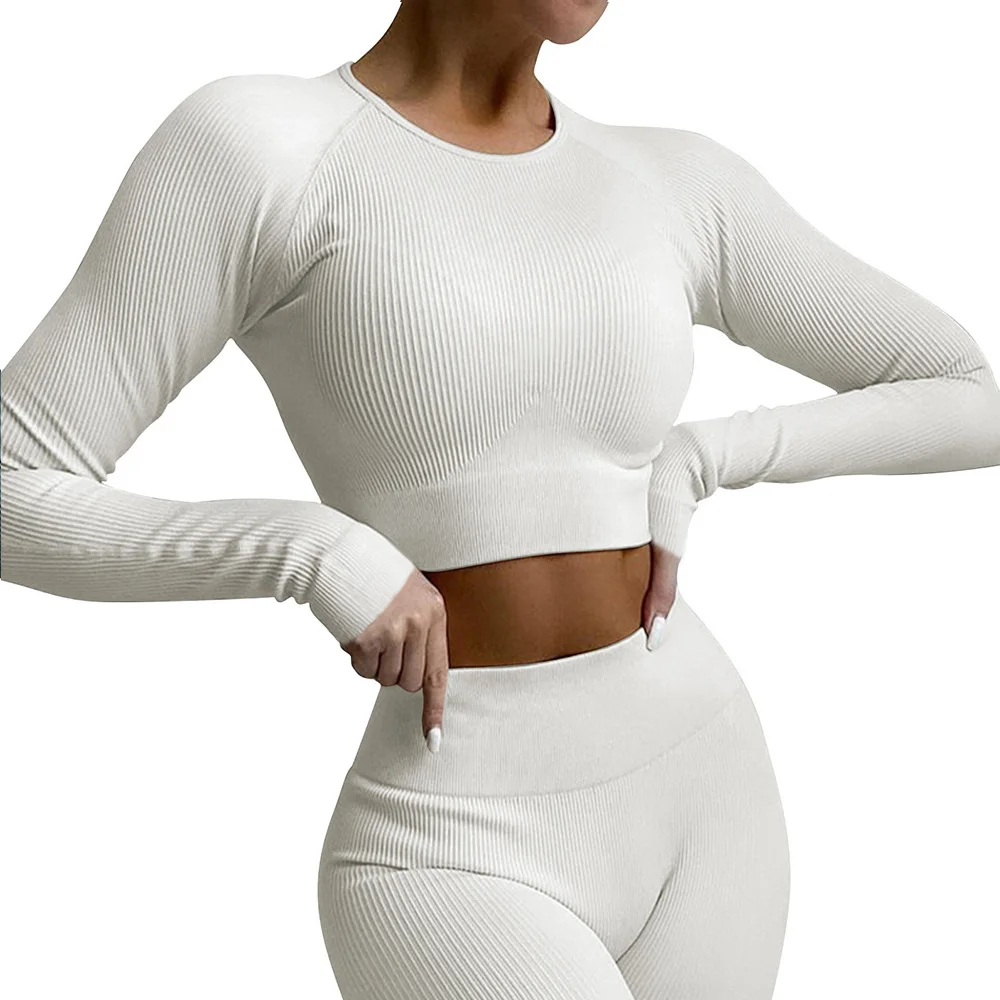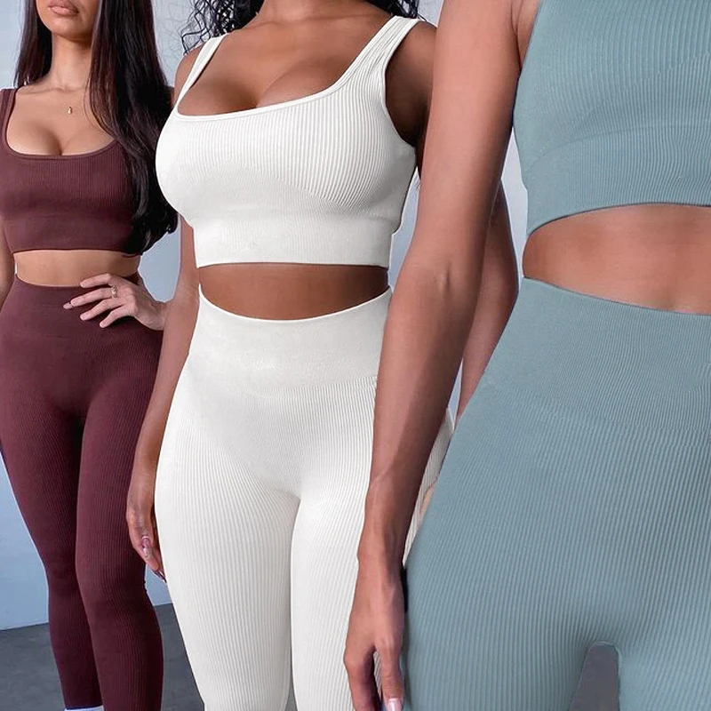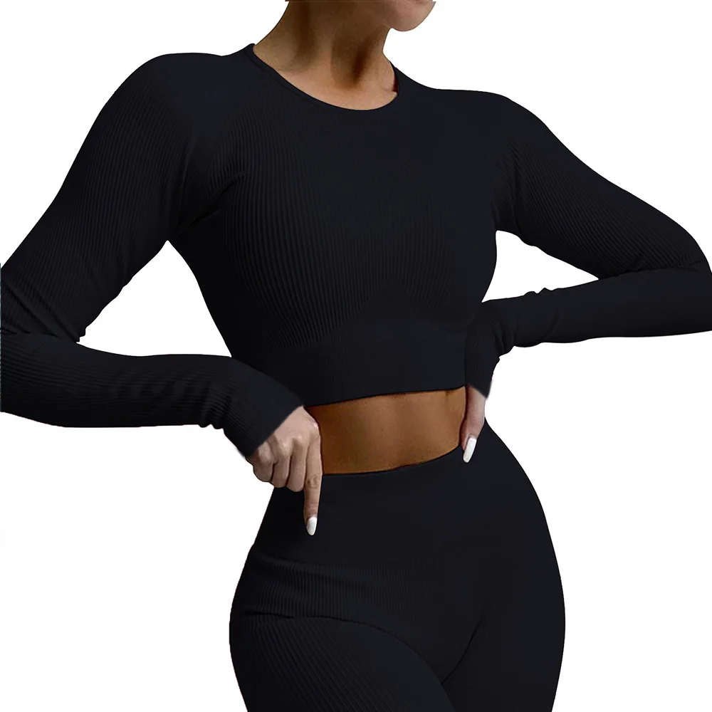 Бесшовные комплекты для тренажерного зала и йоги, Женский ребристый фитнес-костюм, спортивная одежда, тренировочный костюм, леггинсы и топ, спортивная одежда, спортивная одежда