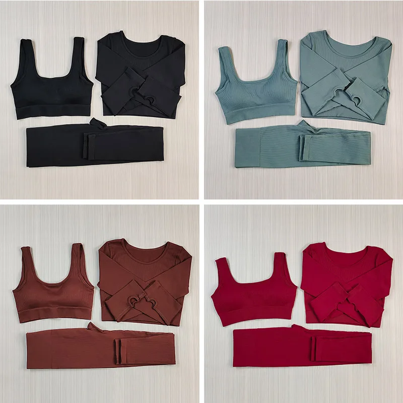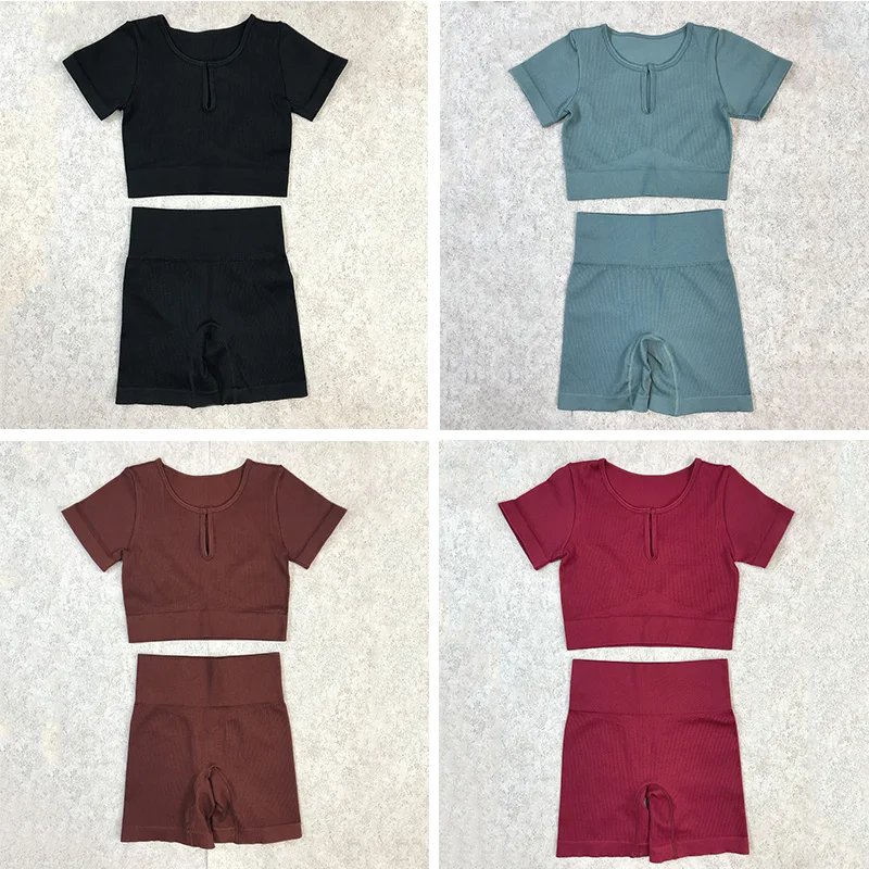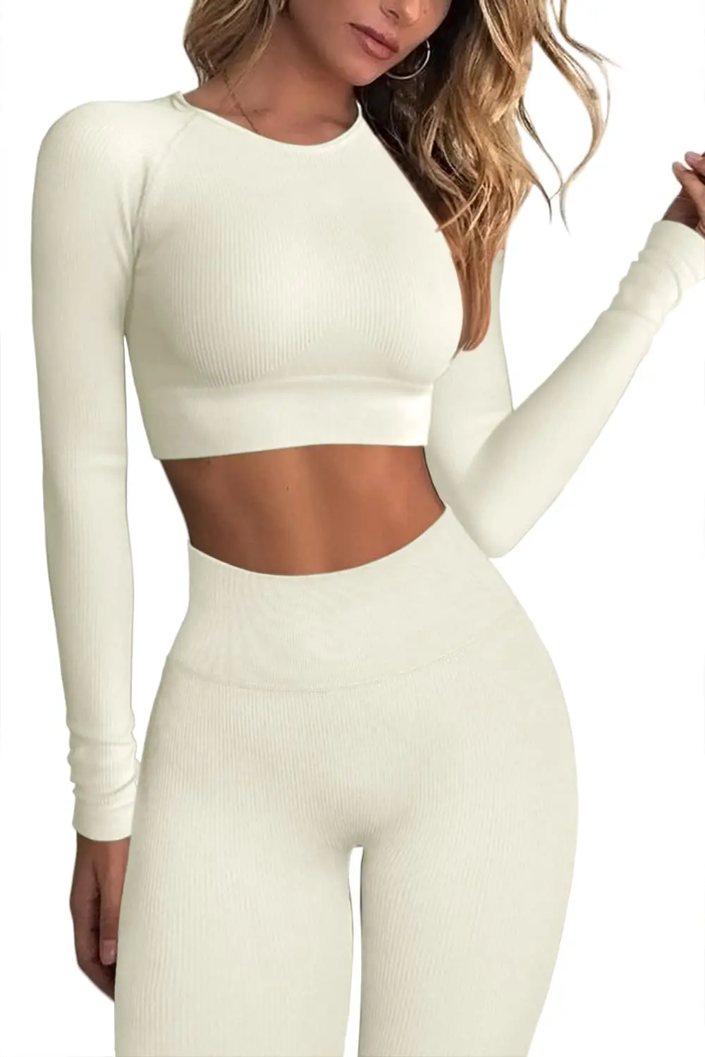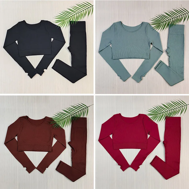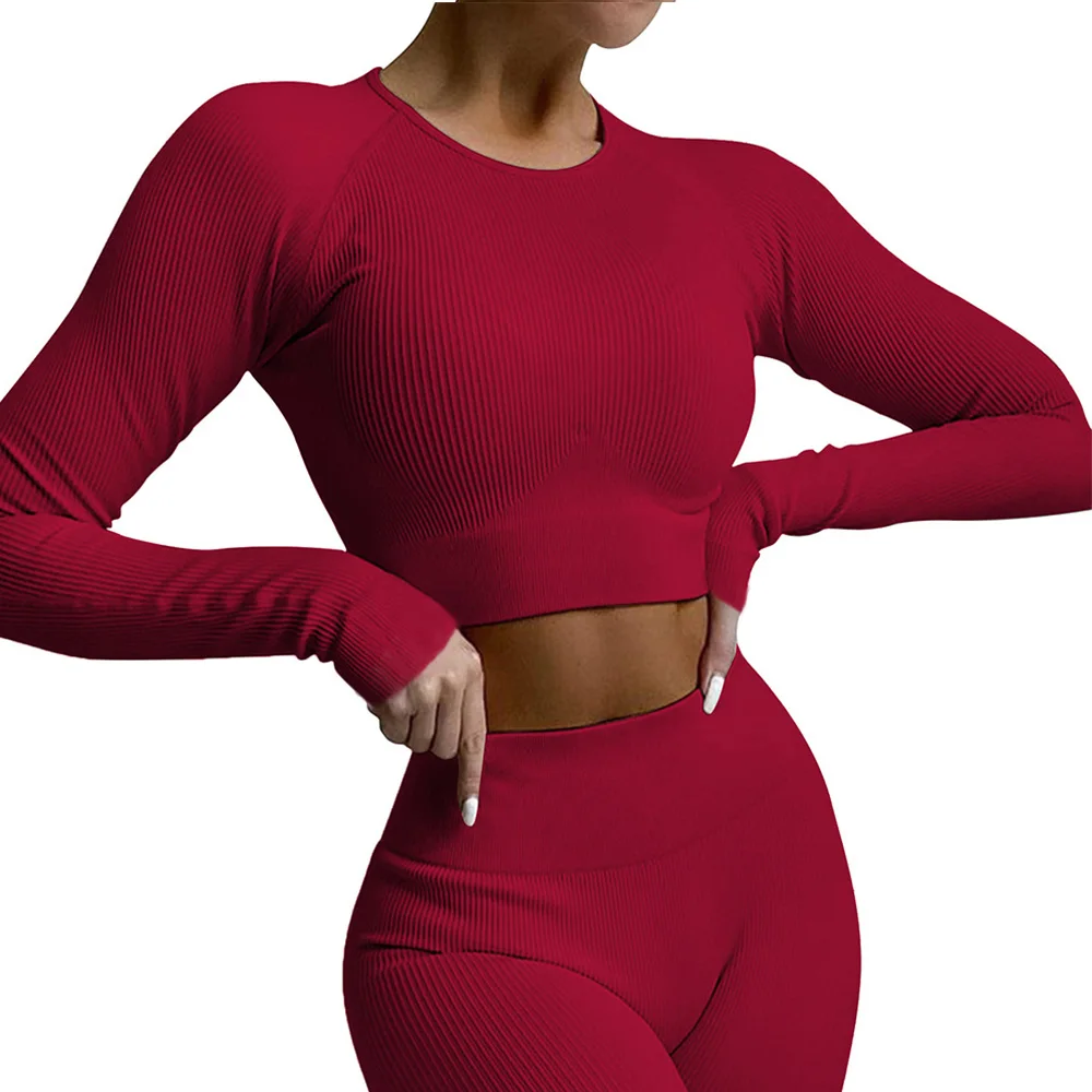 Бесшовные комплекты для тренажерного зала и йоги, Женский ребристый фитнес-костюм, спортивная одежда, тренировочный костюм, леггинсы и топ, спортивная одежда, спортивная одежда