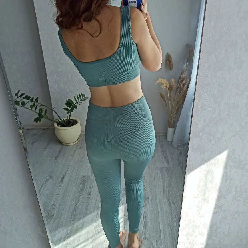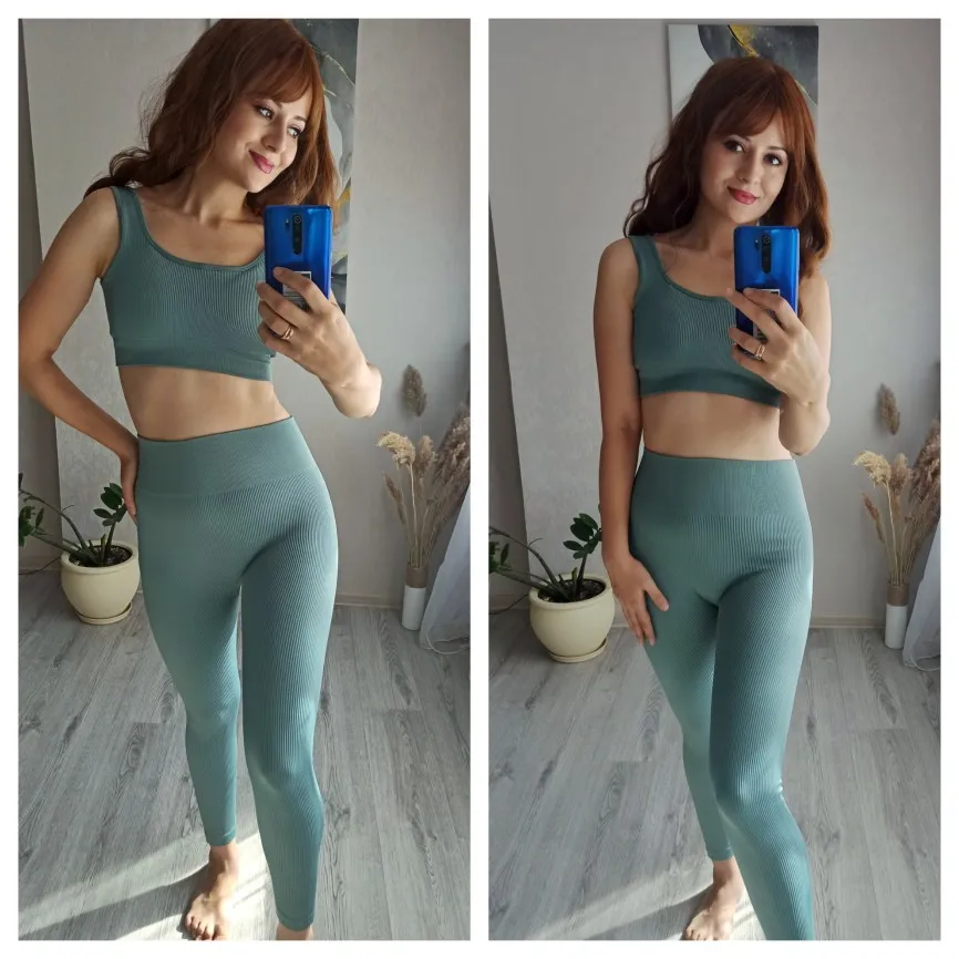 Крутейший костюм для фитнеса и йоги! Просто шикарный! Очень понравился. Представлен в различных цветах. Я выбрала красивый мятный цвет. Можно выбрать разные вариации этого костюма: верх с рукавами или без, леггинсы или велосипедки. Размерный ряд: s-I. На параметры 89-71-100 и рост 171 см, заказала размер l. Подошёл отлично! Материал в рубчик, плотный - нейлон. Тянется. К телу приятный. Качество отличное. Доставка 14 дней. Посылка отслеживалась. Рекомендую!!! Больше фото в Ins: reshka_nastya, распаковка: You.Tube: Nastya Resh