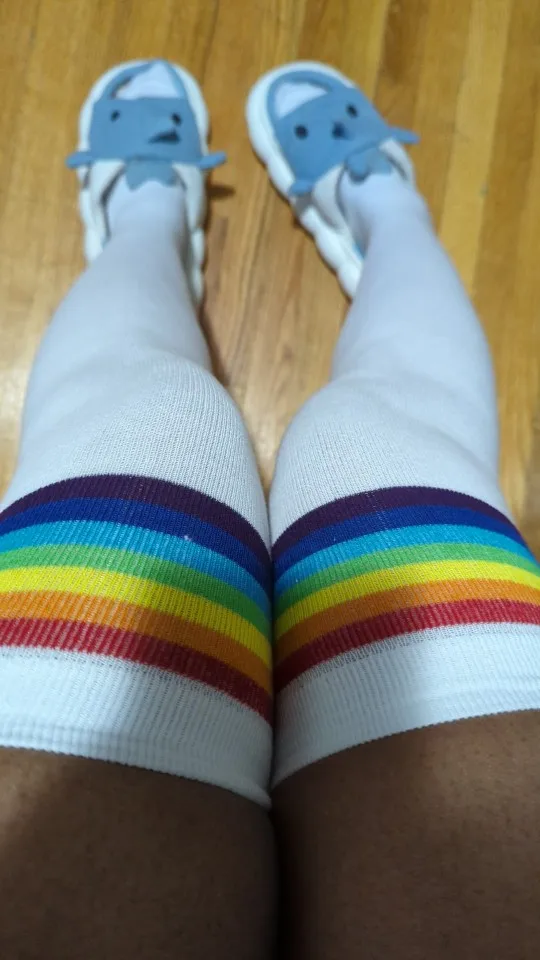 Гольфы, женские гольфы, в корейском и японском стиле, с радужной полоской