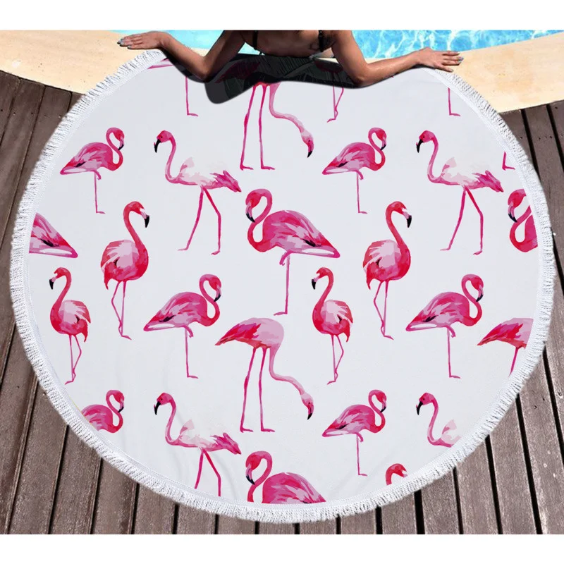 Тропическое летнее пляжное полотенце с принтом фламинго, пляжное полотенце для занятий водными видами спорта, полотенце для плавания и серфинга, портативный большой круглый коврик для йоги