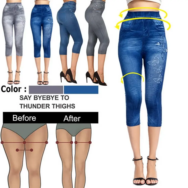 Высокая Талия Имитация Джинсы Леггинсы Узкие эластичные бесшовные р...