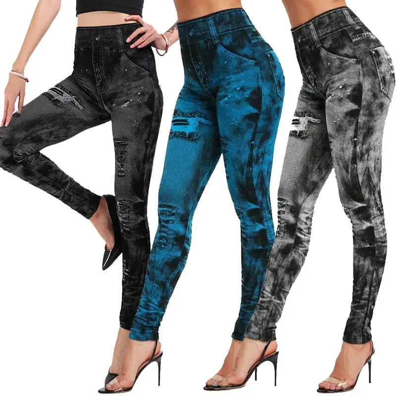 Женские пикантные Бесшовные Джинсовые Леггинсы с эффектом пуш-ап и высокой талией, женские весенние эластичные Джеггинсы из искусственного денима, брюки, женские леггинсы 3XL 2021