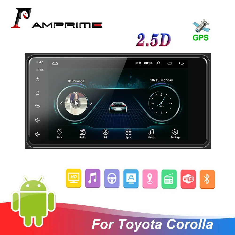 Автомагнитола AMPrime, мультимедийный плеер на Android, с GPS, Wi-Fi, сенсорным экраном, камерой заднего вида, с функцией Mirror Link, FM, AUX, USB, типоразмер 2DIN