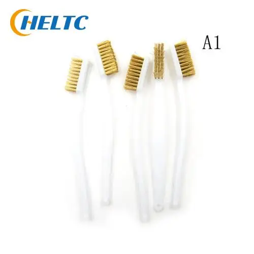5 шт.лот, мини-пластиковая ручка, латунная щетина, проволочная щетк...