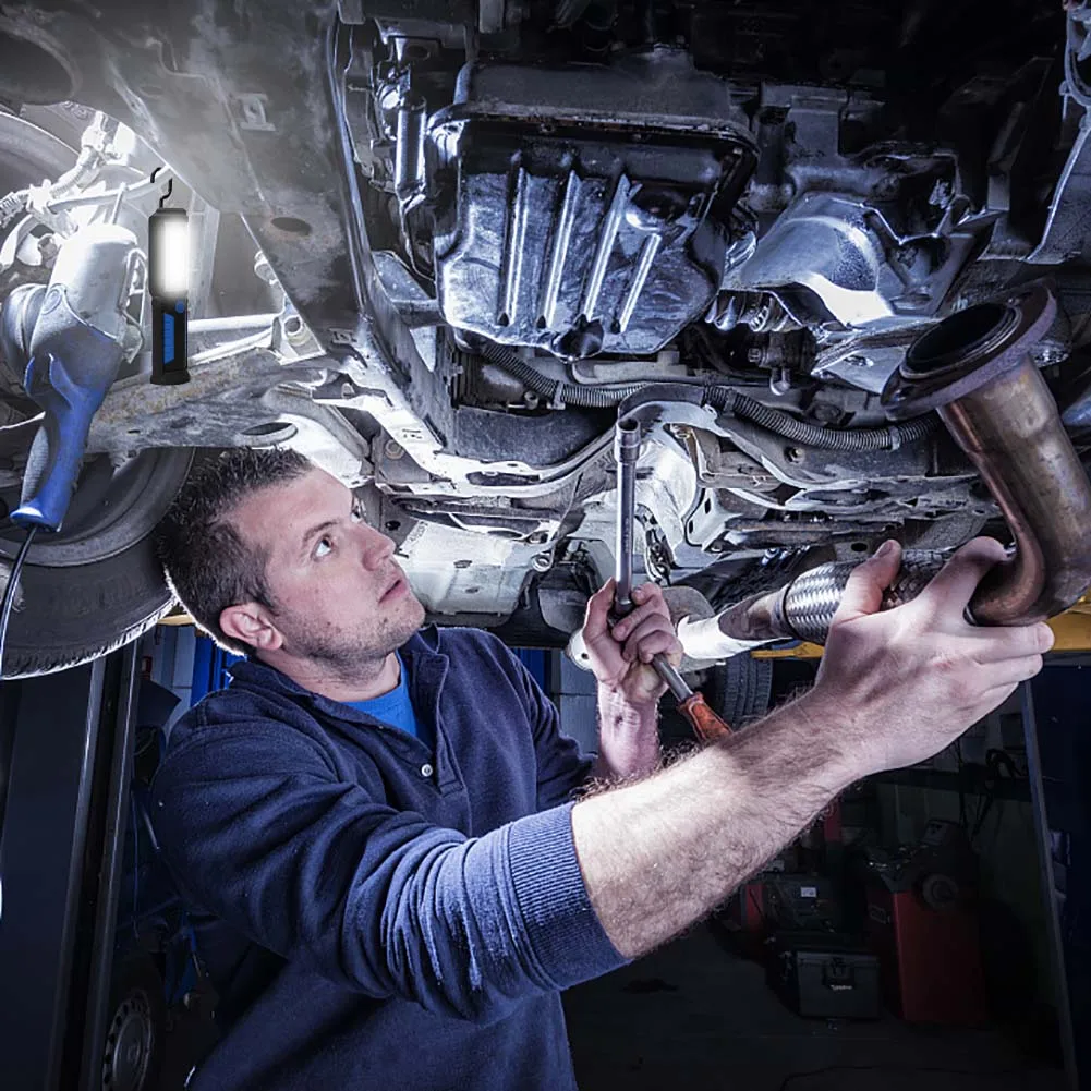 Пластиковый корпус, обернутый в слой черного углерода, приятный на ощупь, нескользящий. Нижняя часть магнита с регулируемым подшипником 0 ° -90 °, конструкция крючка, легко использовать в небольшом пространстве внутри. Дальний свет и ближсветильник два различных режима освещения для удовлетворения светильник щении. Светодиодные лампы экономят энергию и защищают окружающую среду, долго служат. Используйте 3 батарейки типа АА для легкой замены