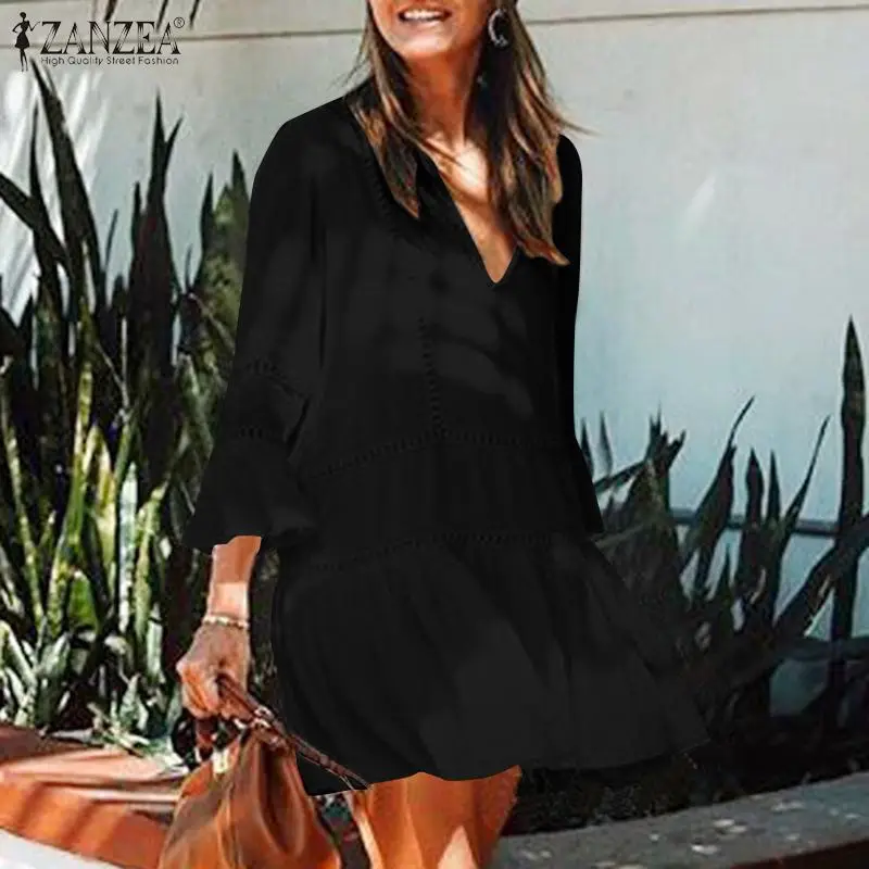 2022 ZANZEA повседневное кружевное крючком праздничное платье богемное летнее женское пляжное платье с v-образным вырезом и рукавом 34 мини Vestidos