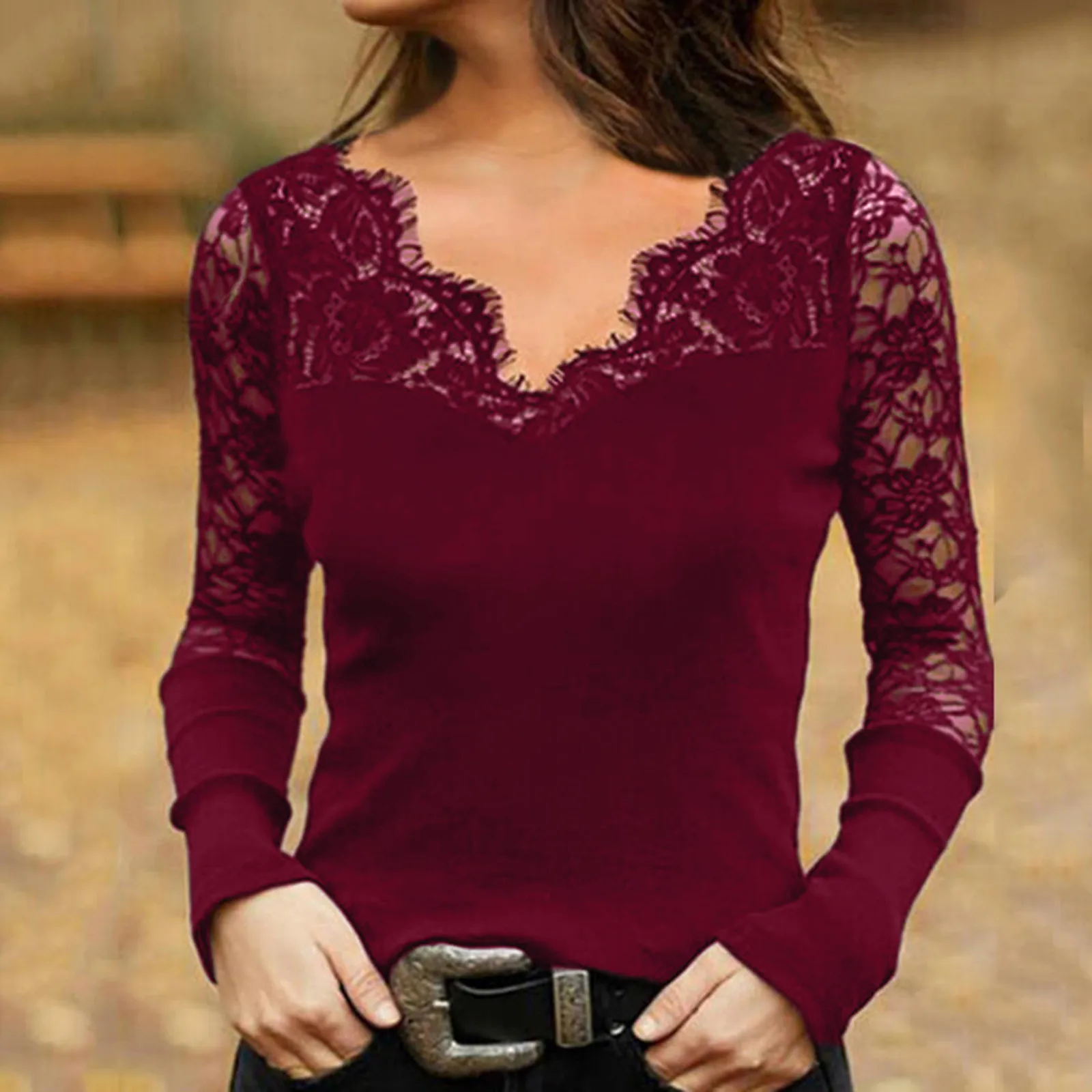 Пикантная кружевная блузка 40 #, женский длинный стильный пуловер с открытыми плечами и V-образным вырезом, кружевная Нижняя блузка, женский элегантный топ, блузы