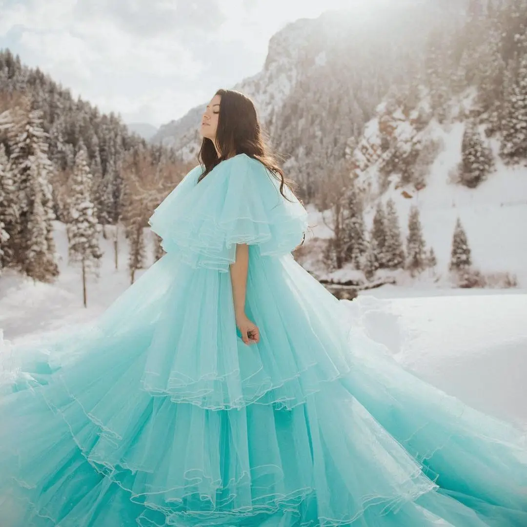 Мятно-зеленый тюлевый халат для фотосессии, длинное женское платье, прозрачная пышная ярусная юбка, летнее платье 2021