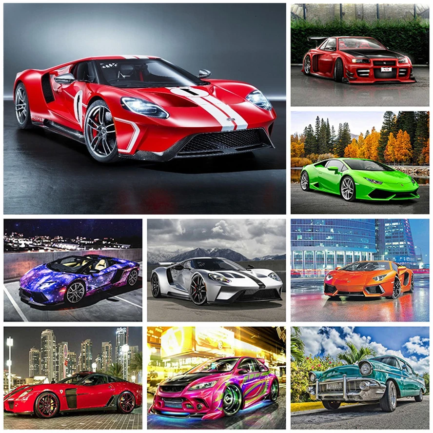5D алмазная живопись сделай сам, автомобиль, полная выкладка, алмазная вышивка, пейзаж, вышивка крестиком, мозаика, картина для украшения дома, подарок