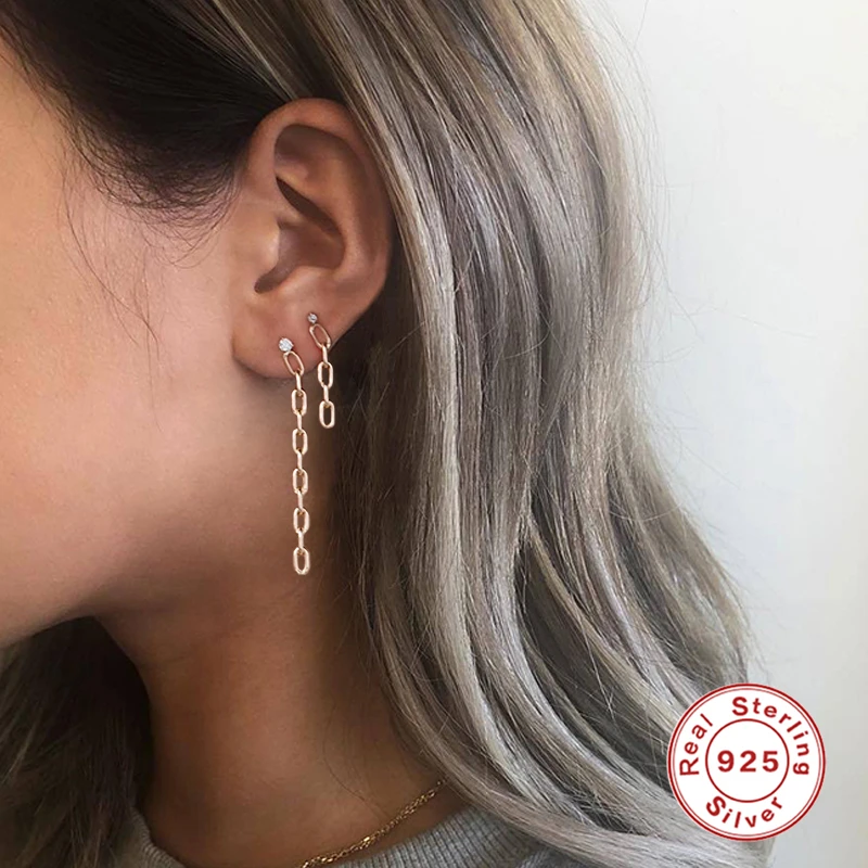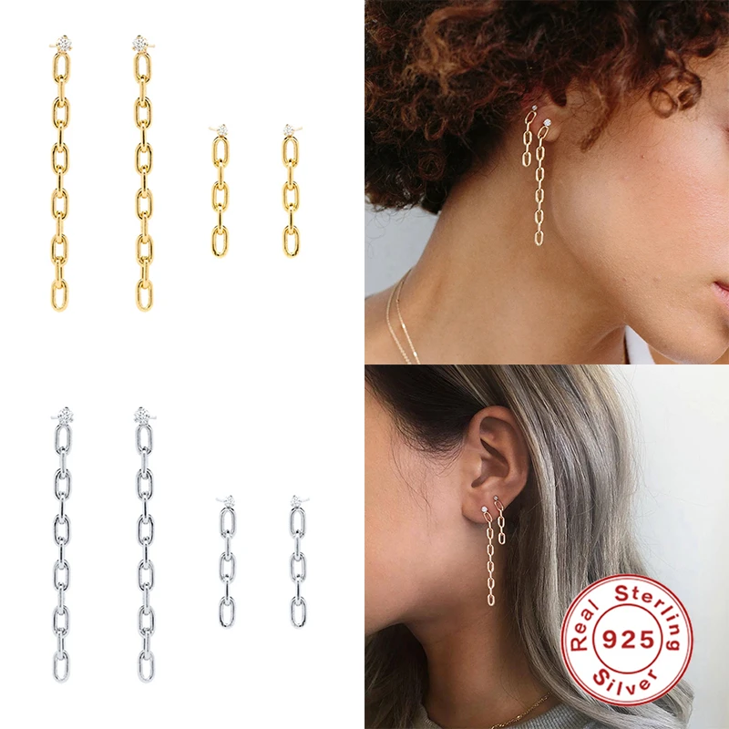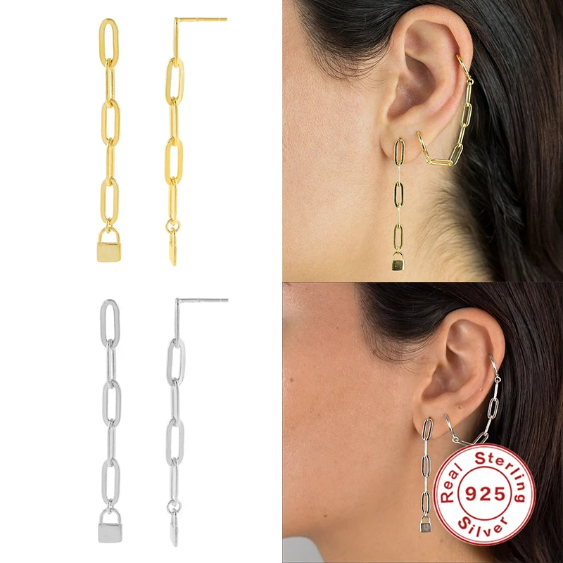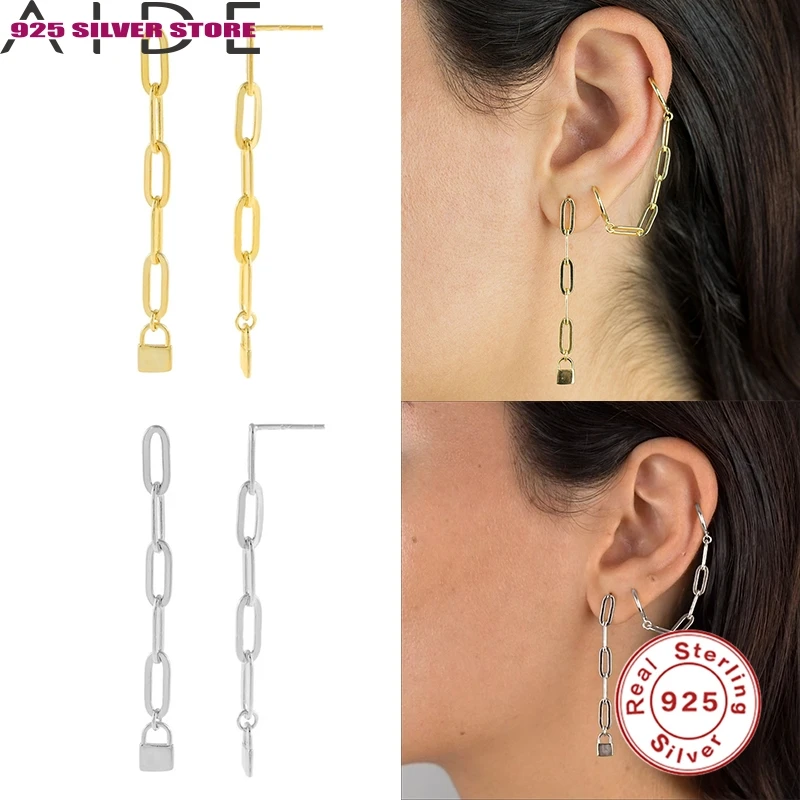 Aide Pendientes плата ювелирные изделия 925 стерлингового серебра 925 серебряные серьги для женщин Скрепка цепи блокировки висячие серьги циркон ювелирные изделия для пирсинга
