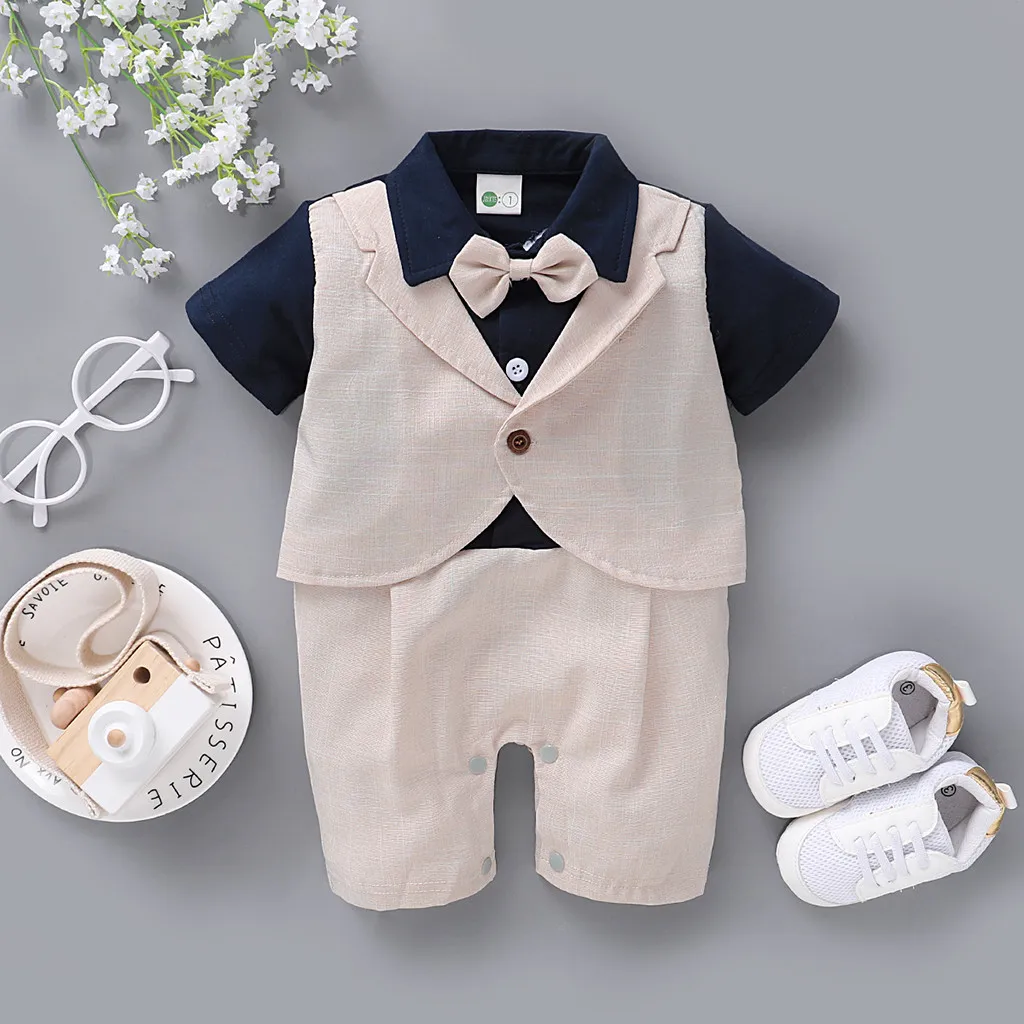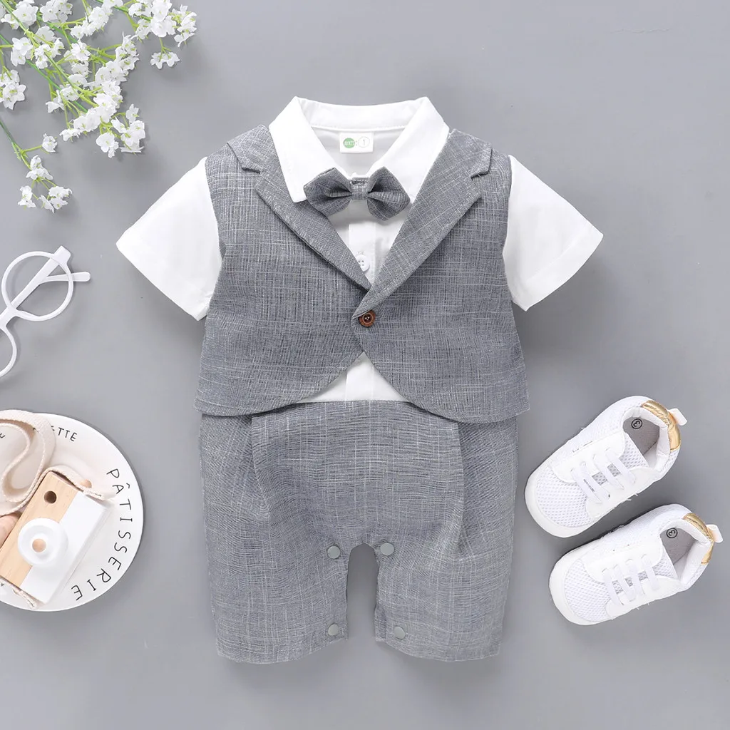 Комбинезон для новорожденных мальчиков с коротким рукавом и галстуком-бабочкой