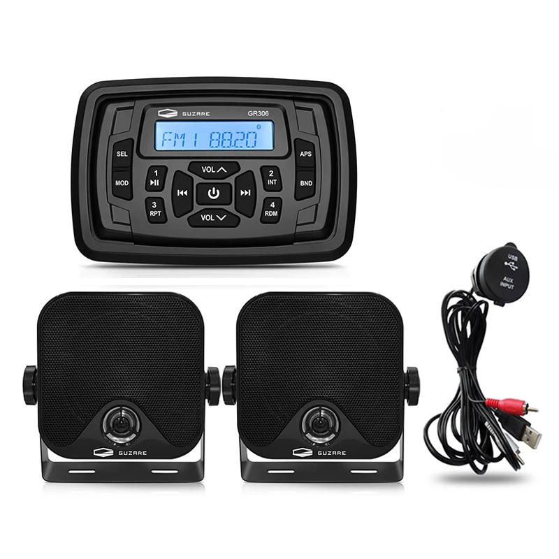 Морское радио Bluetooth стерео аудио mp3-плеер звуковая система + 4-дюймовый морской водонепроницаемый динамик + USB-кабель для лодки для RV UTV SPA Golf Cart