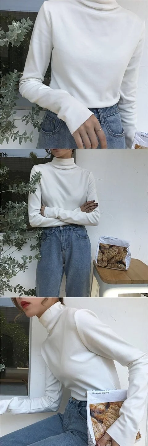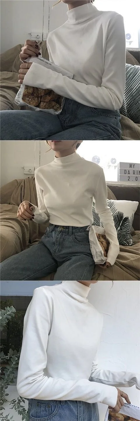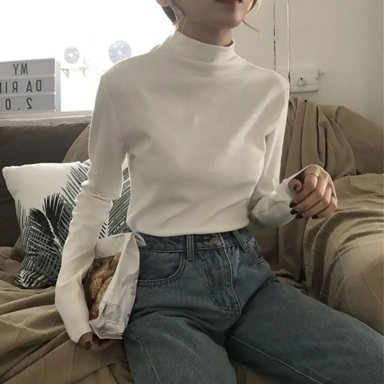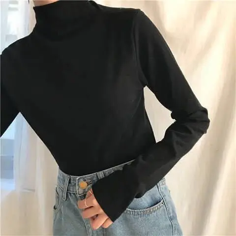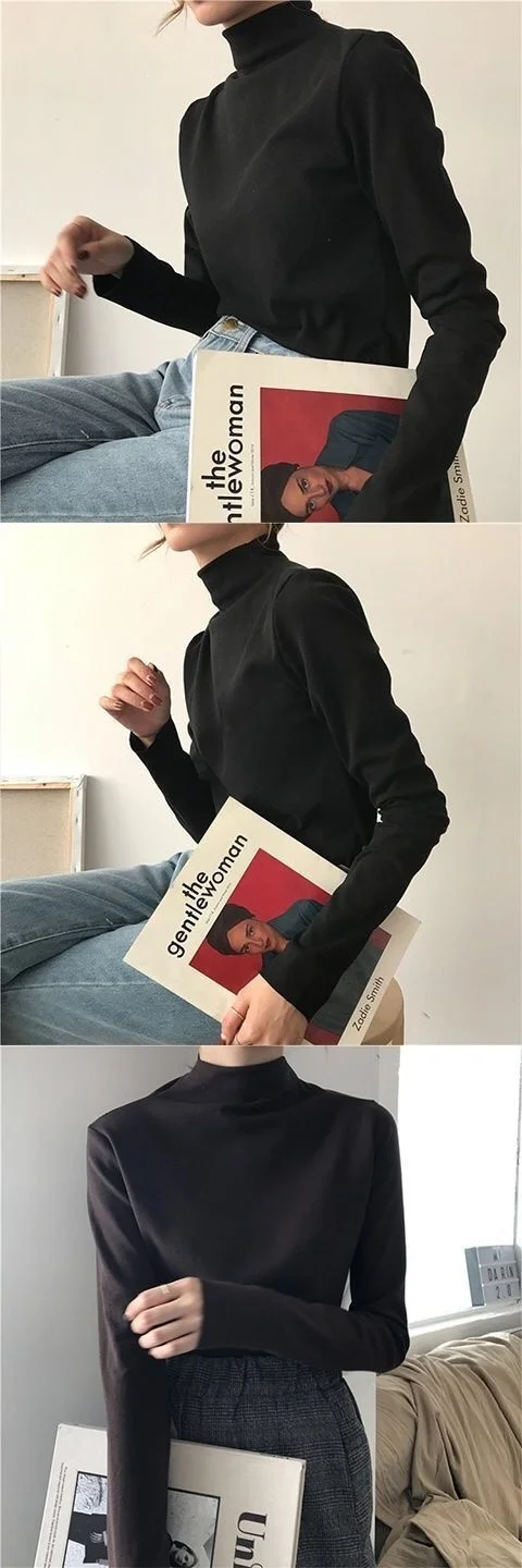 Женские футболки на осень и зиму, Женская водолазка с длинным рукавом, топ, женские футболки