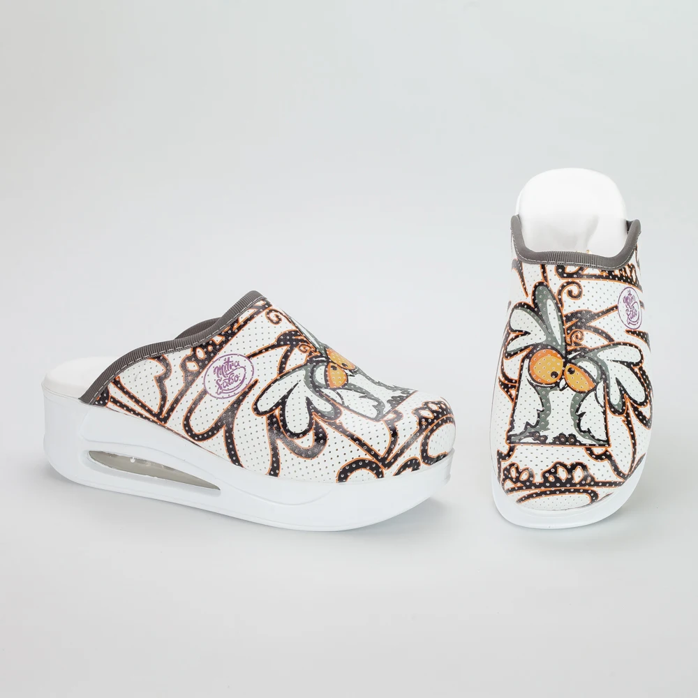 -Была создана система для уменьшения давления костей с помощью амортизирующей системы в носках и пяточной части сабо.