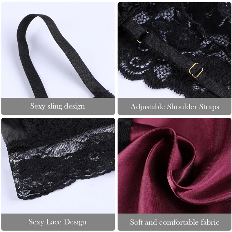 Сексуальное атласное нижнее белье на шнуровке, комбинация, эротичес...