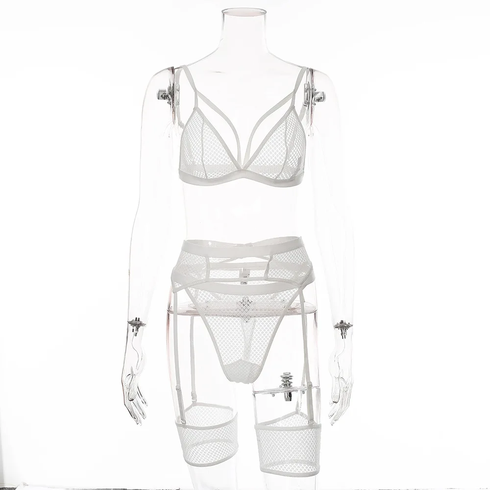 Комплект нижнего белья женский кружевной, прозрачный сетчатый бюстгальтер без косточек, комплект из 3 предметов, 2021