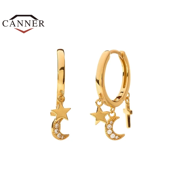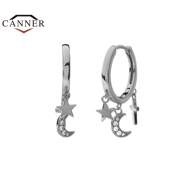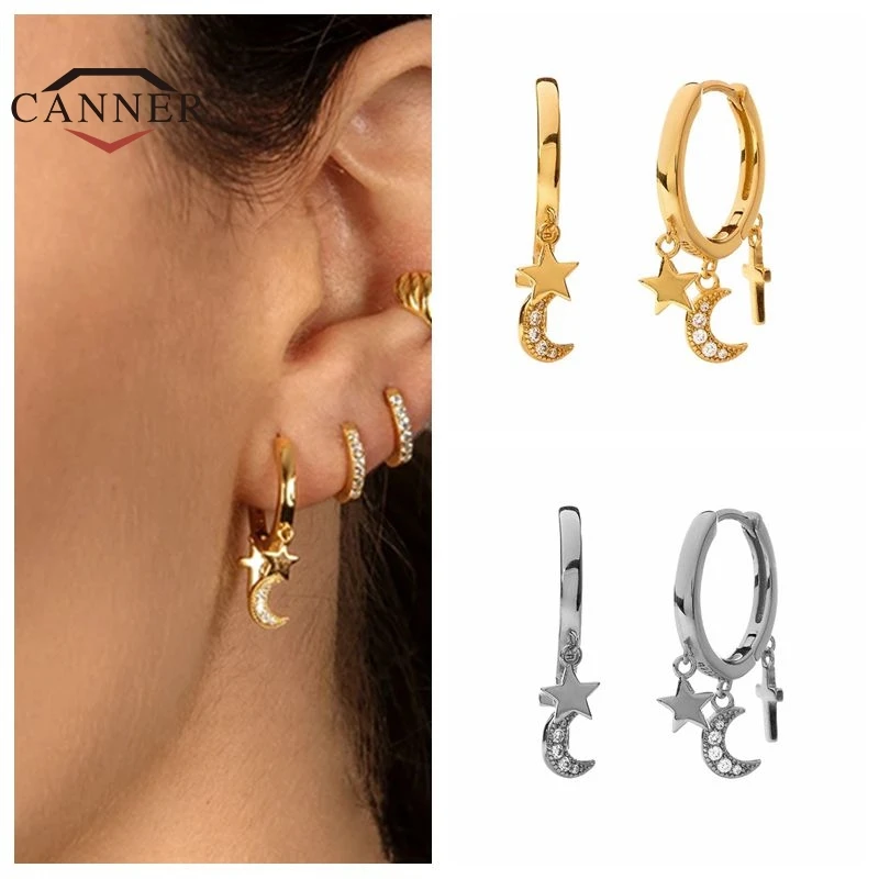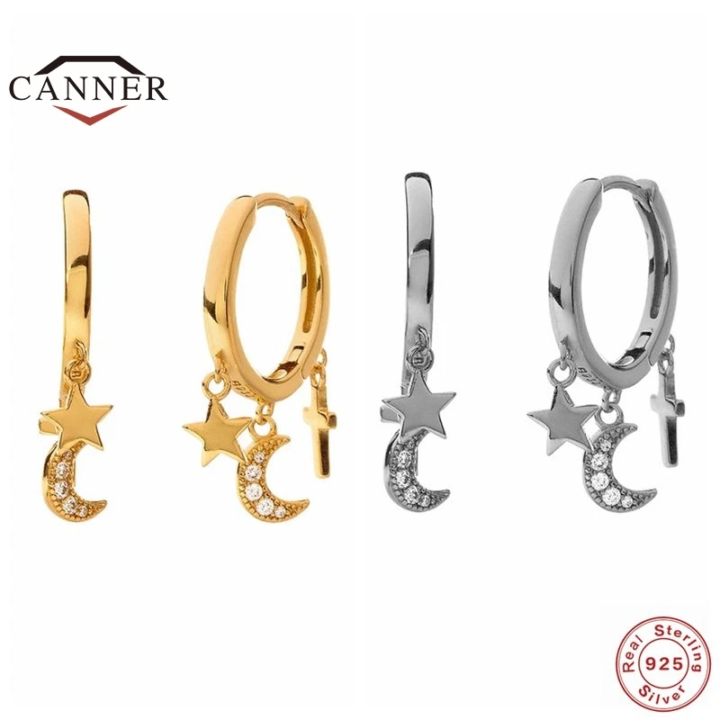 Женские Висячие серьги CANNER из стерлингового серебра 925 пробы, изысканная подвеска Звезда Луна, ювелирные изделия для пирсинга