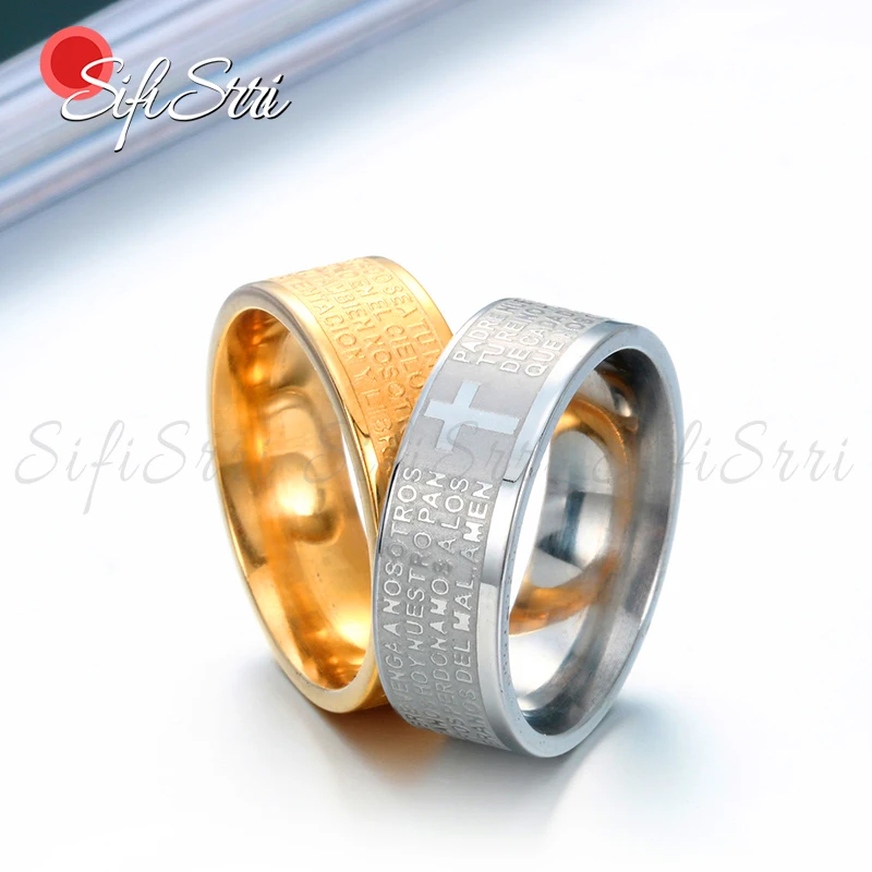 Серебряное кольцо из нержавеющей стали Sifisrri, 8 мм, испанское кольцо для молитвы, религиозная мусульманская молитва, вечерние ювелирные изделия, подарок, Прямая поставка и оптовая продажа