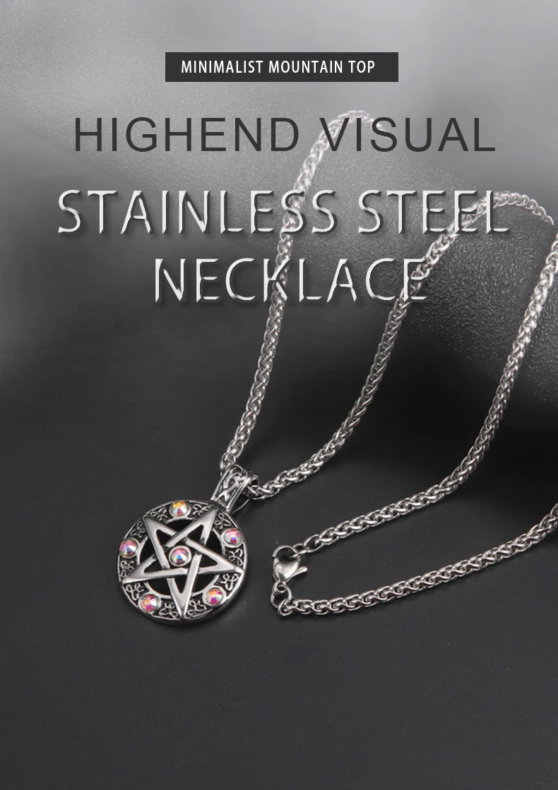 Сверхъестественное ожерелье Wicca для мужчин и женщин, полая пентаграмма, звезда, циркон, кулон, чокер в готическом стиле, викинги, ювелирные изделия из нержавеющей стали