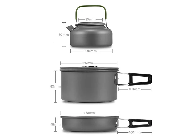 Материал: Высокопрочный алюминий.Спецификация кастрюли для приготовления пищи: 166x89ммХарактеристики сковороды: 167x39ммЕмкость чайника: 800 млПодходящий номер: 2-3 человека